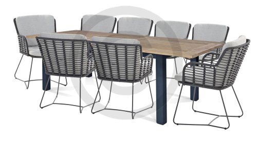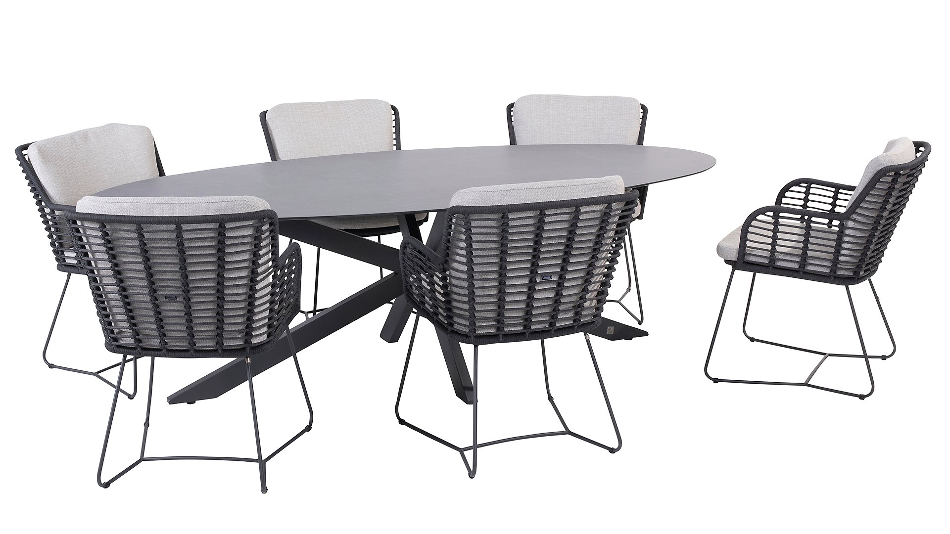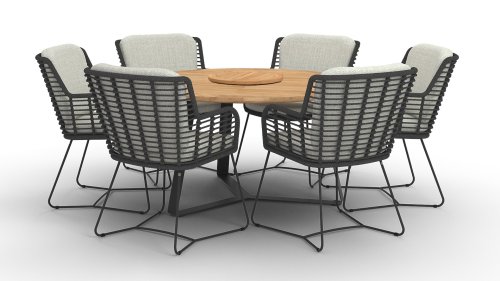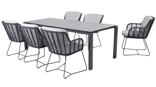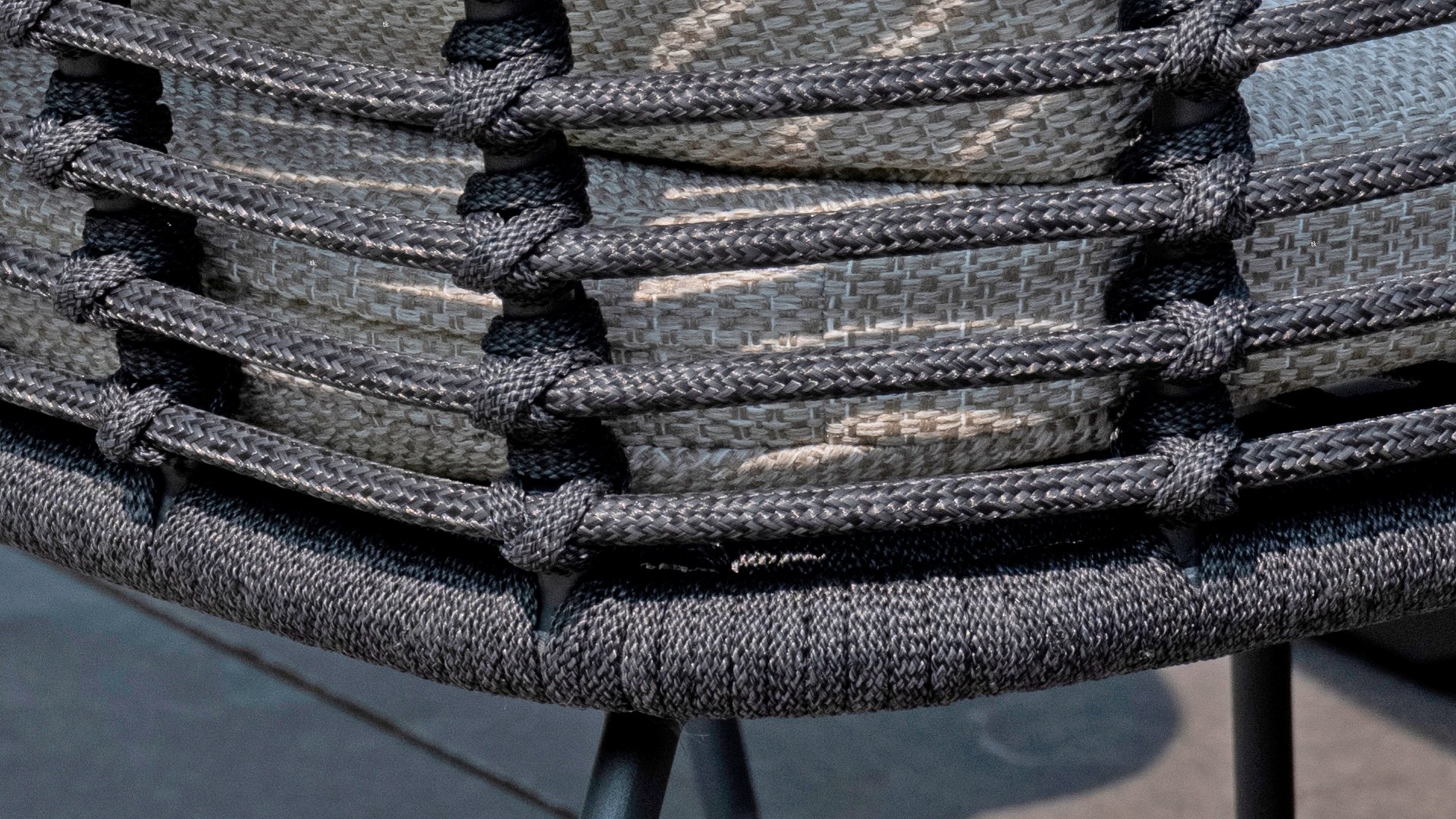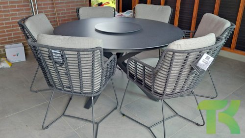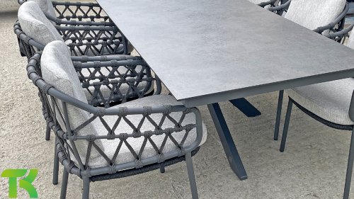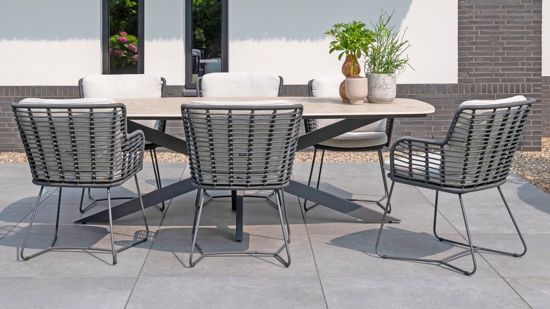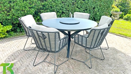 Der Rahmen des Fabrice 4SO Dining fließen in einander und dies wird fertiggemacht mit dem einzigartige Rope Geflechte. Rückenlehne und Sitzfläche ist mit dieser starken Rope geflochten und gibt ein fest, aber bequem Sitzen. Die schönen Rahmen sind aus Aluminium. Ein schönes, flaches Seil (Rope) mit einem weichen und komfortablen Aussehen wurde in den Rahmen eingewebt. Die runden und Eckige Formen erhalten das Gleichgewicht dieses modernen Designs. Der Rahmen ist eine spielerische und zerbrechlich Zusammenspiel von glatten Linien, die wieder zusammen kommen und auseinander gehen, ein fest für die Augen!