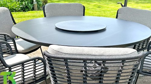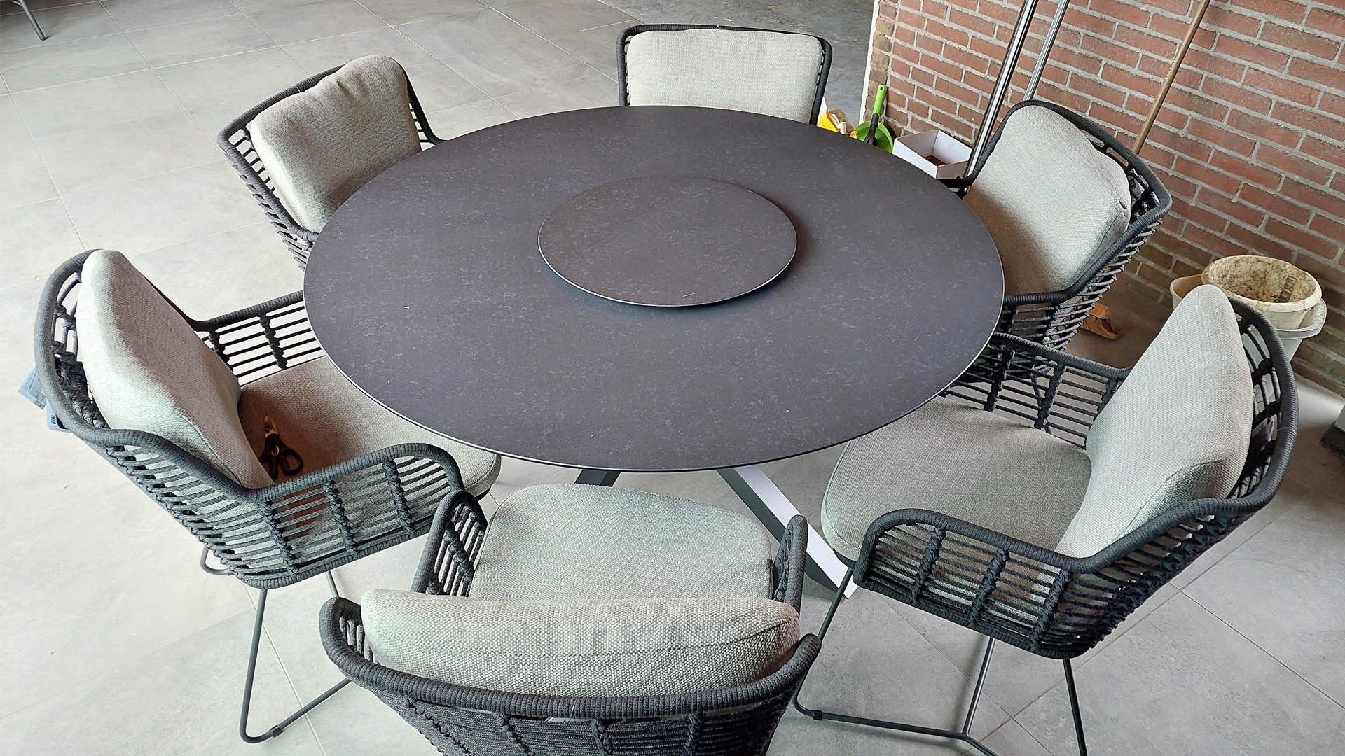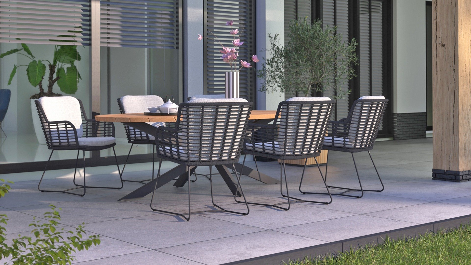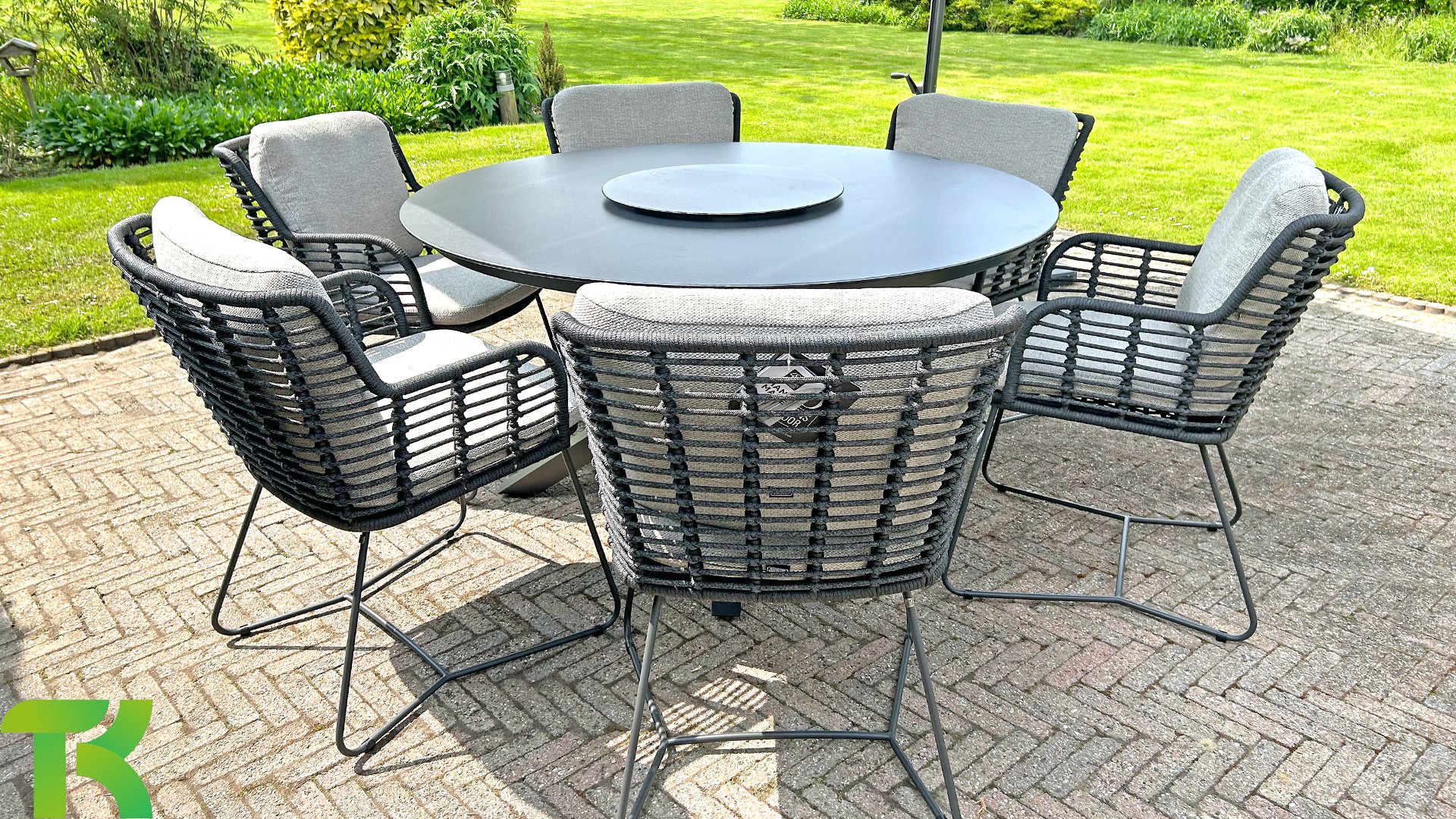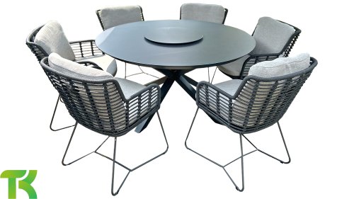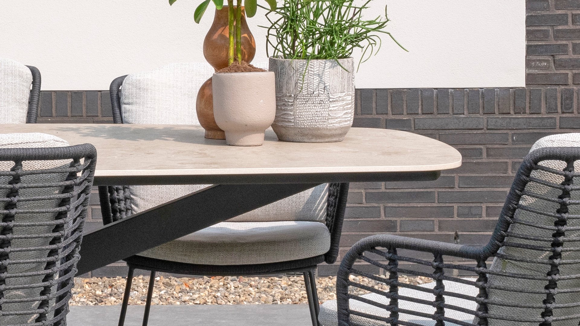 Der Rahmen des Fabrice 4SO Dining fließen in einander und dies wird fertiggemacht mit dem einzigartige Rope Geflechte. Rückenlehne und Sitzfläche ist mit dieser starken Rope geflochten und gibt ein fest, aber bequem Sitzen. Die schönen Rahmen sind aus Aluminium. Ein schönes, flaches Seil (Rope) mit einem weichen und komfortablen Aussehen wurde in den Rahmen eingewebt. Die runden und Eckige Formen erhalten das Gleichgewicht dieses modernen Designs. Der Rahmen ist eine spielerische und zerbrechlich Zusammenspiel von glatten Linien, die wieder zusammen kommen und auseinander gehen, ein fest für die Augen!
