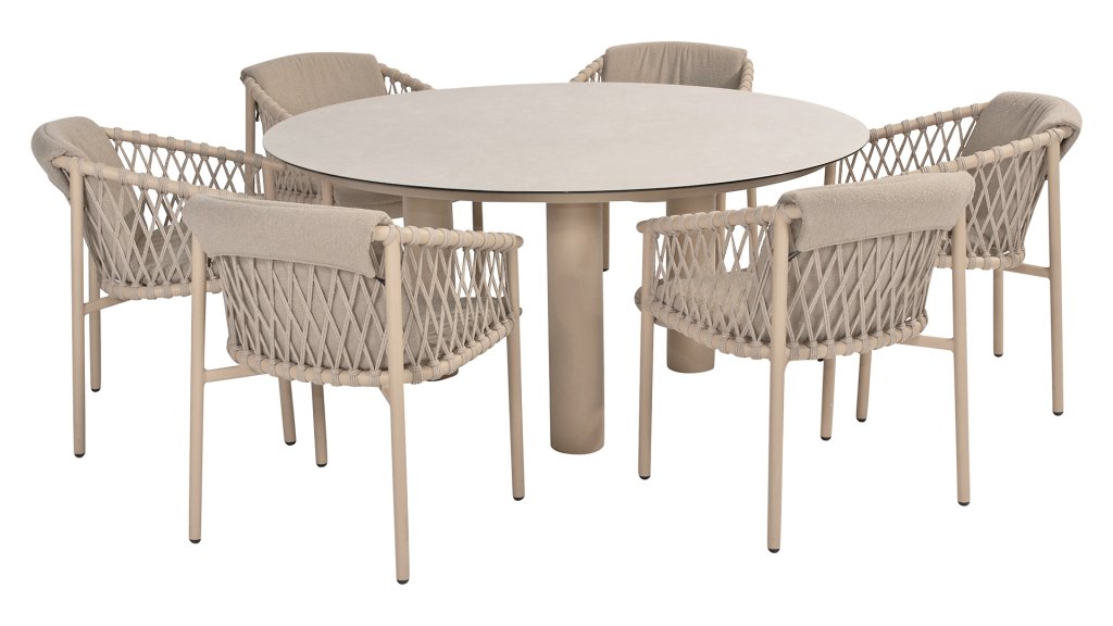 In der Taste by 4 Seasons Outdoor Donato-Serie gibt es einige Möglichkeiten, so ist er als Esstisch in den Farben erhältlich: Taste 4Seasons Donato Tisch Ø160cm Latte & Taste 4Seasons Donato Tisch Ø160 cm Terre, was es Ihnen ermöglicht, das perfekte Match für Ihr Interieur zu wählen. Um die Mayonnaise oder die Milch an die Person gegenüber zu reichen, fügen Sie einfach den: Taste 4Seasons Donato Lazy Susan dem Ganzen hinzu. Außerdem ist auch eine Low-Dining-Variante in der Farben Latte & Terre erhältlich, ideal für ein informelles und entspanntes Speiseerlebnis: Taste 4Seasons Donato Low Dining Tisch Ø160cm Latte, Taste 4Seasons Donato Low-Dining Tisch Ø160 cm Terre. Was gibt es noch?