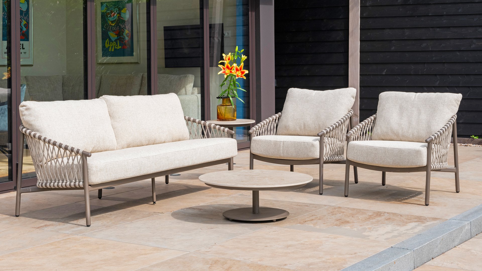 Erleben Sie die perfekte Kombination aus Stil und Komfort mit der Allora Lounge von 4 Seasons Outdoor. Diese wunderschöne Lounge mit ihrem auffälligen runden Design verleiht Ihrem Außenbereich einen Hauch von Eleganz. In warmen Erdtönen gehalten, fügt sich der Allora Lounge nahtlos in jeden Garten ein und schafft eine einladende Atmosphäre.