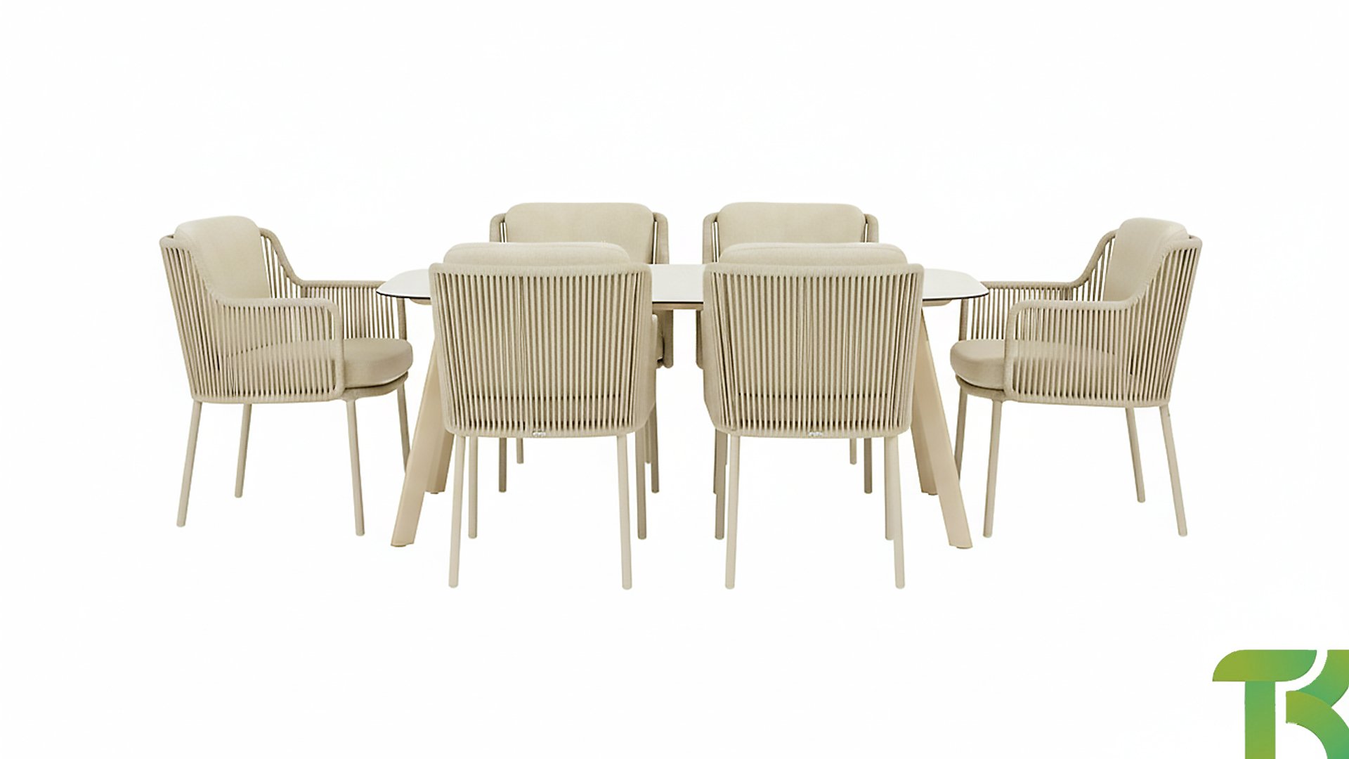 Der trendige Farbton Latte verleiht diesem Seil(Rope)-Gartenmöbel-Set einen sanften, modernen Look. Das warme Beige harmoniert sowohl mit naturnahen Gärten als auch mit eleganten Designer-Terrassen. Dank hochwertiger Materialien wie Aluminium und wetterfestem Seil bleibt die Farbe jahrelang schön. Ideal für alle, die langlebige und pflegeleichte Gartenmöbel suchen.