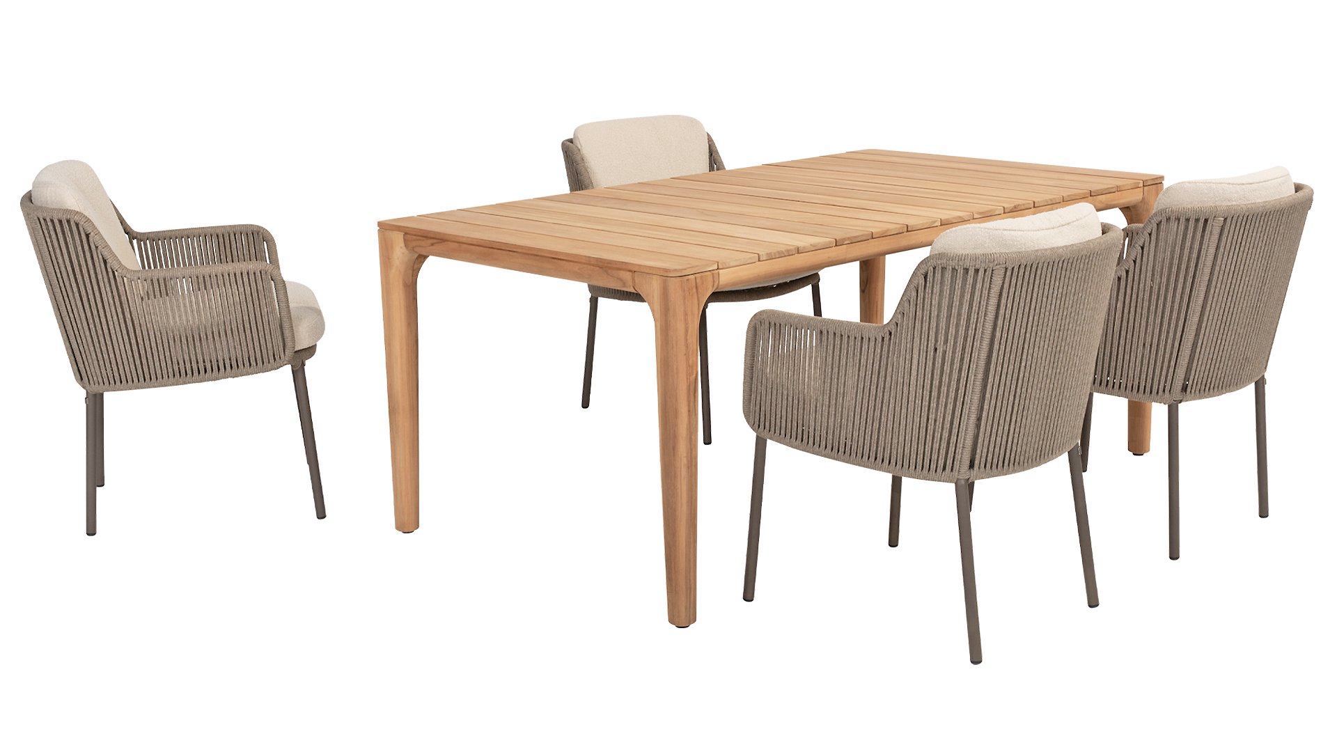 Mit dem Liam Tisch von Taste 4SO können Sie beim Essen im Freien den zeitlosen Charme und die Langlebigkeit von Teakholz genießen. Erhältlich in Vollteakholz und Teakkeramik: