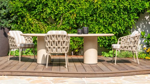 Was diesen Gartenstuhl wirklich auszeichnet, ist seine edle Verarbeitung und sein modernes Design mit den einzigartigen gestreiften Kissen. Die sanften Kurven und die stilvolle Optik passen zu jedem Gartenambiente – von klassisch bis modern. Ob Sie einen gemütlichen Essbereich schaffen oder bequeme Sitzgelegenheiten für gesellige Runden suchen, der Beverley Gartenstuhl fügt sich perfekt in jede Umgebung ein. Eine Lounge ist ebenfalls in der 4Seasons Beverly Serie erhältlich.