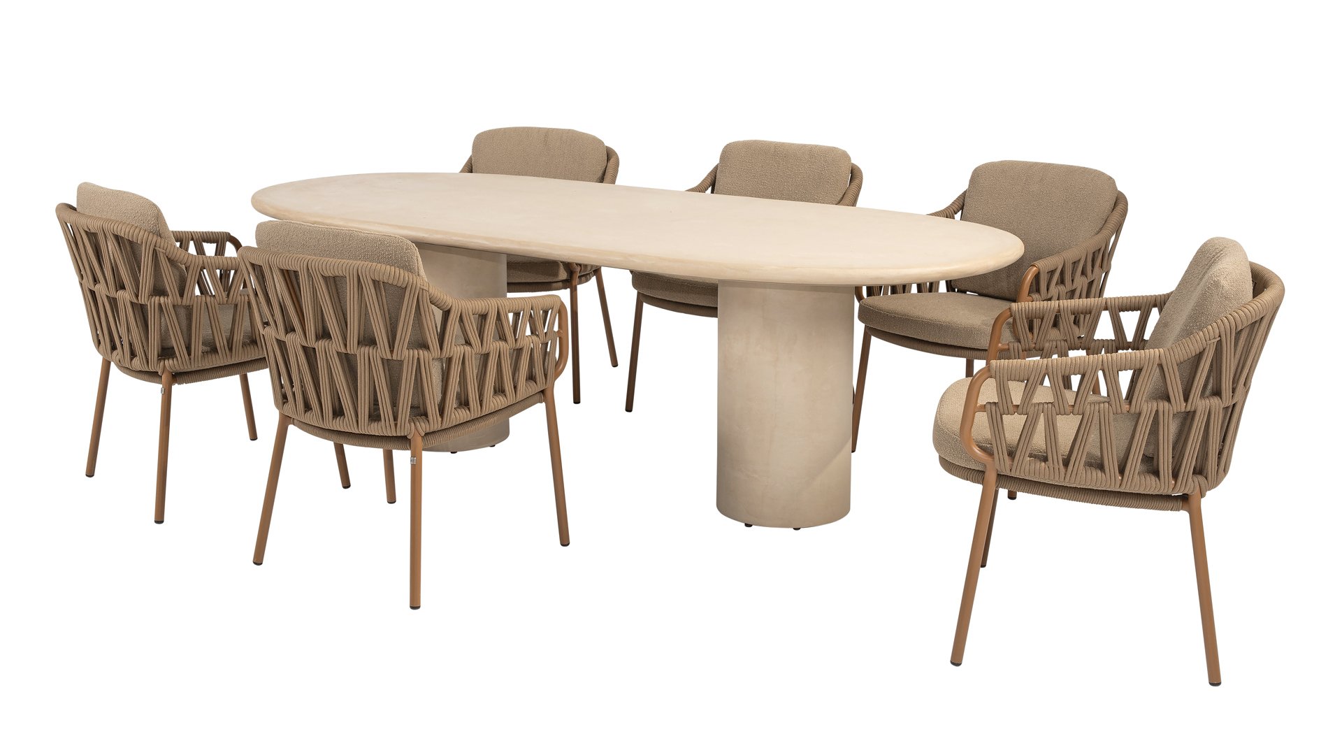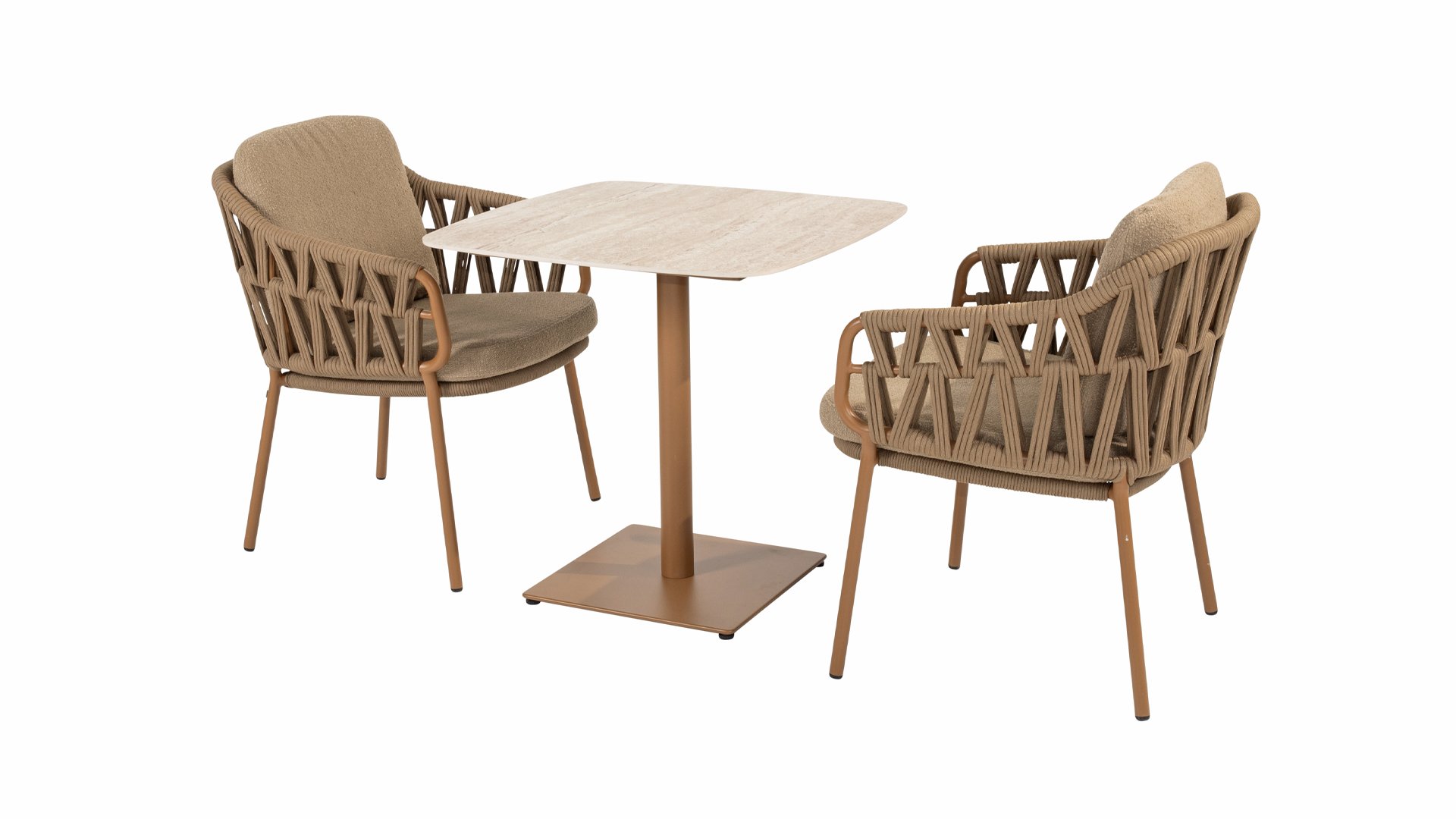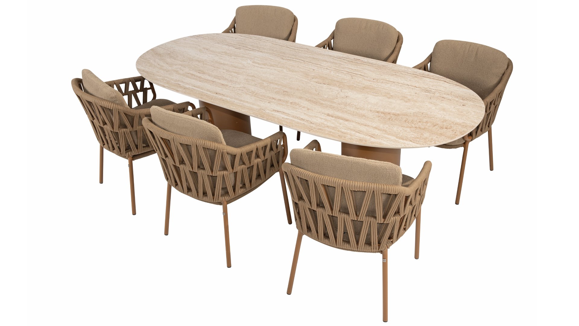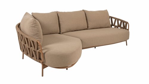 Der Name Biarritz erinnert an das glamouröse französische Badeort, berühmt für seine elegante Atmosphäre und seine feine Kultur. Diese Möbel sind ebenso stilvoll und zeitlos wie das ikonische Resort an der Atlantikküste. Das warme, bernsteinfarbene Gestell erinnert an die Sonnenuntergänge über dem Ozean, während die luxuriösen Kissen den Komfort bieten, den man nach einem Tag am Strand oder in der Stadt verdient.