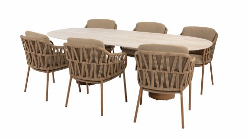 Ein wunderschöner, eleganter Tisch mit einer atemberaubenden ovalen Keramikplatte. Mit einer Länge von 240 cm eignet sich dieser Tisch perfekt für gesellige Zusammenkünfte oder Familienessen. Die Keramikplatte sieht nicht nur elegant aus, sondern ist auch langlebig und pflegeleicht – ideal für den täglichen Gebrauch.