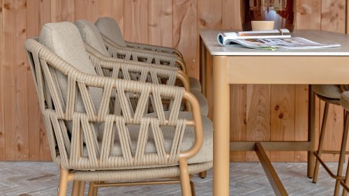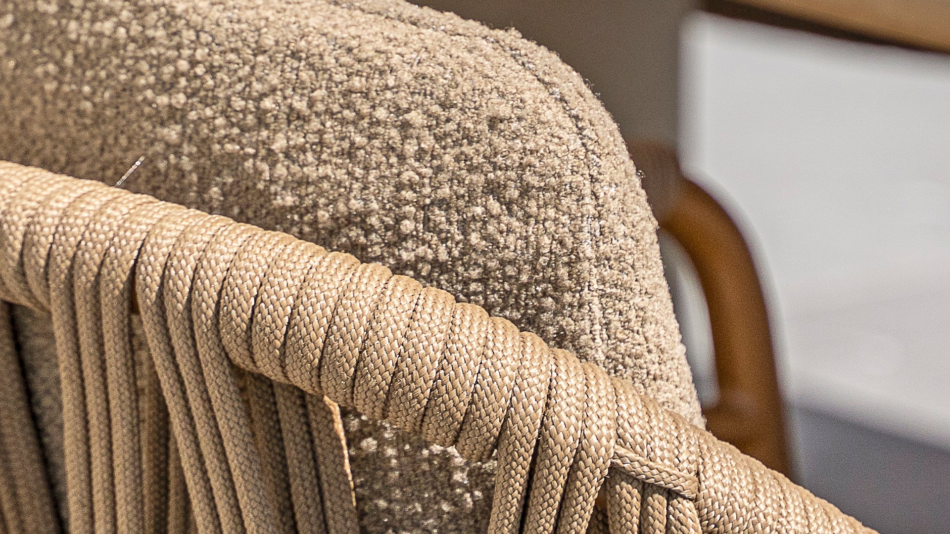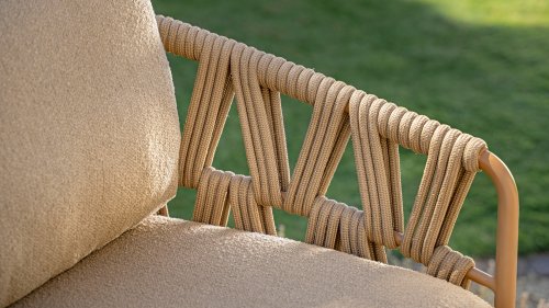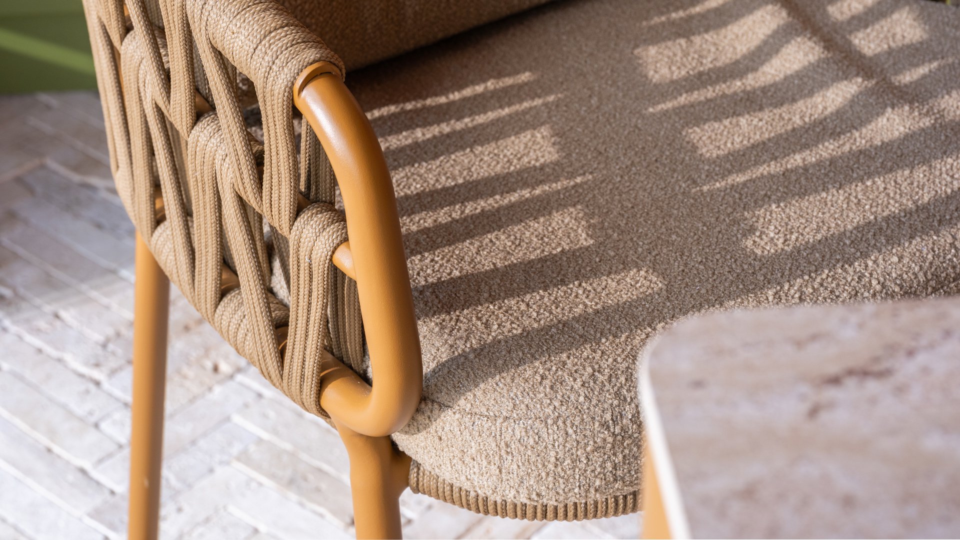 • Natürliches Design: Die braune Seilpolsterung verleiht dem Stuhl ein natürliches, warmes und einladendes Aussehen – perfekt für eine entspannte Outdoor-Atmosphäre.
