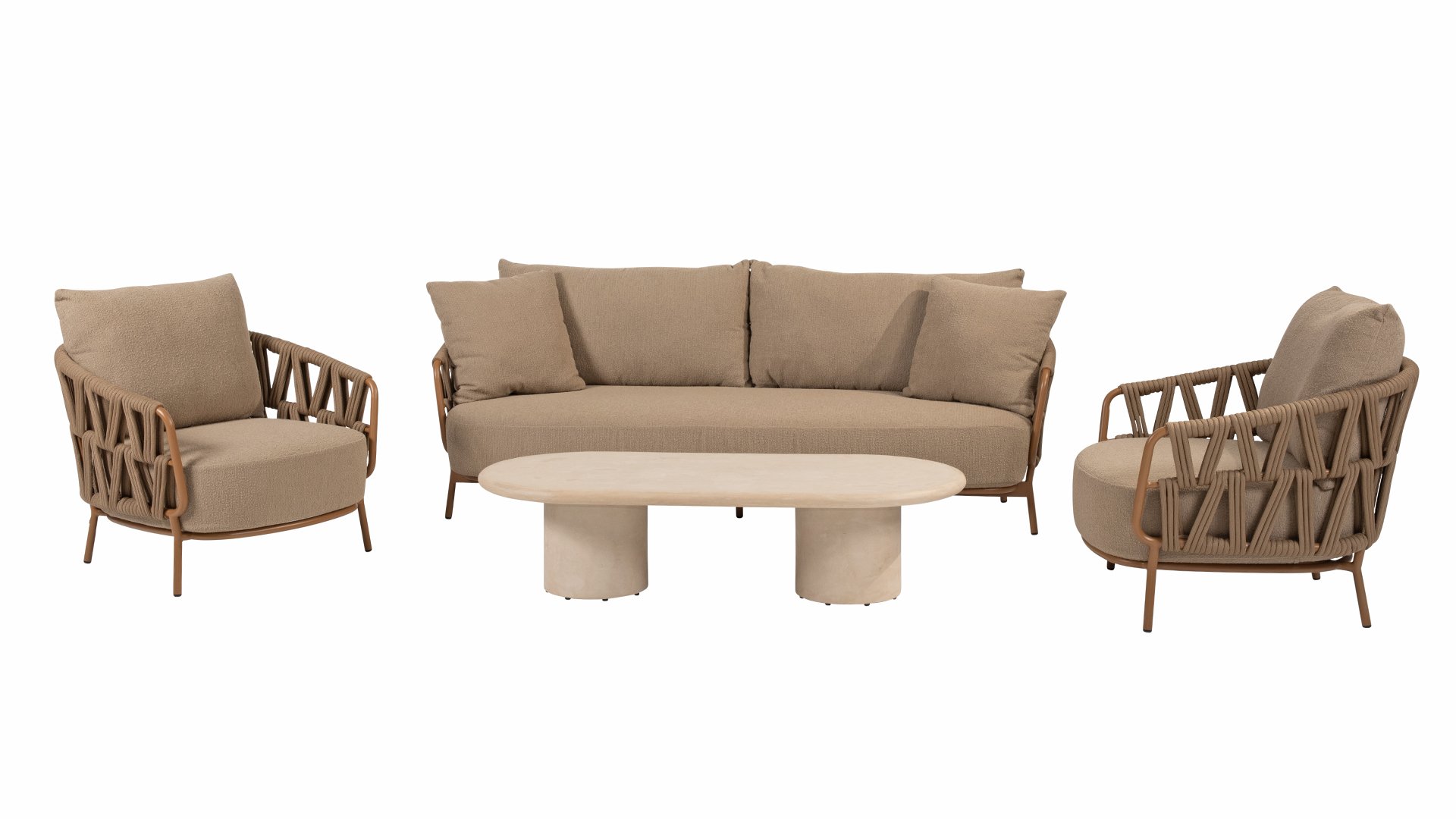 | Materialien Loungegruppe | Rope, Pulverbeschichtet Aluminium/Stahl |