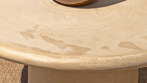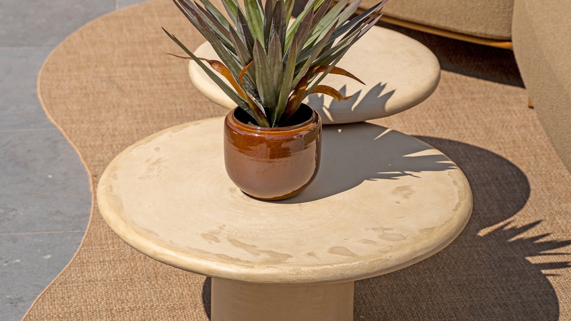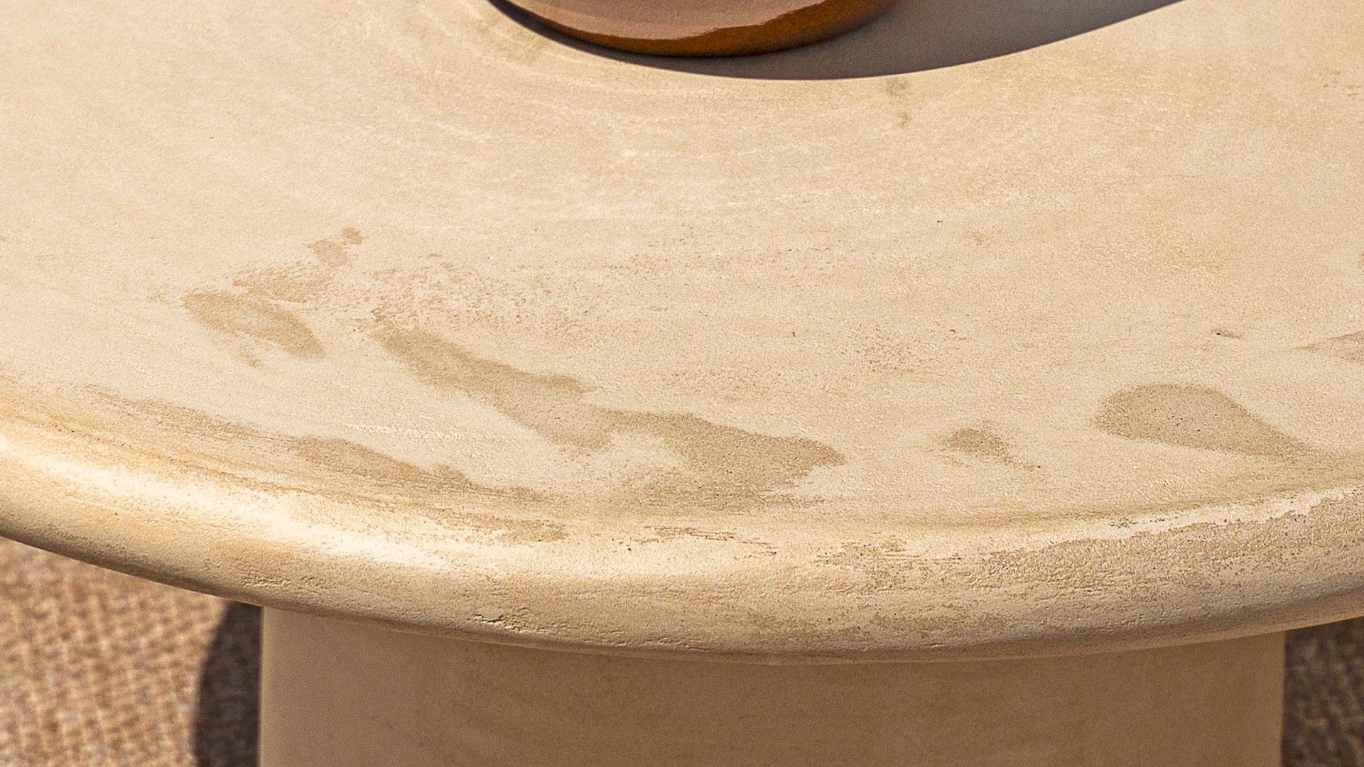 Mortex besteht aus einer Mischung aus Kalk, Zement und feinen Mineralpulvern. Pigmente und Harze werden dieser Mischung zugesetzt, um sie flexibel, wasserfest und haftfest zu machen. Sie wird von Hand in dünnen Schichten aufgetragen, anschließend geschliffen und mit einer Schutzversiegelung oder Wachs versiegelt. So entsteht eine nahtlose, robuste und stilvolle Oberfläche, die sich unter anderem für Möbel, Böden und Wände eignet. Ein Mortex-Gartentisch ist wetterfest. Regen, Sonnenlicht und Temperaturschwankungen können dem Material kaum etwas anhaben, sofern der Tisch ordnungsgemäß mit einer Schutzschicht versehen ist. Vorsicht ist jedoch bei säurehaltigen Substanzen wie Zitronensaft, Essig oder Wein geboten. Bleiben diese zu lange auf der Oberfläche, können sie die Schutzschicht beschädigen und Flecken verursachen.