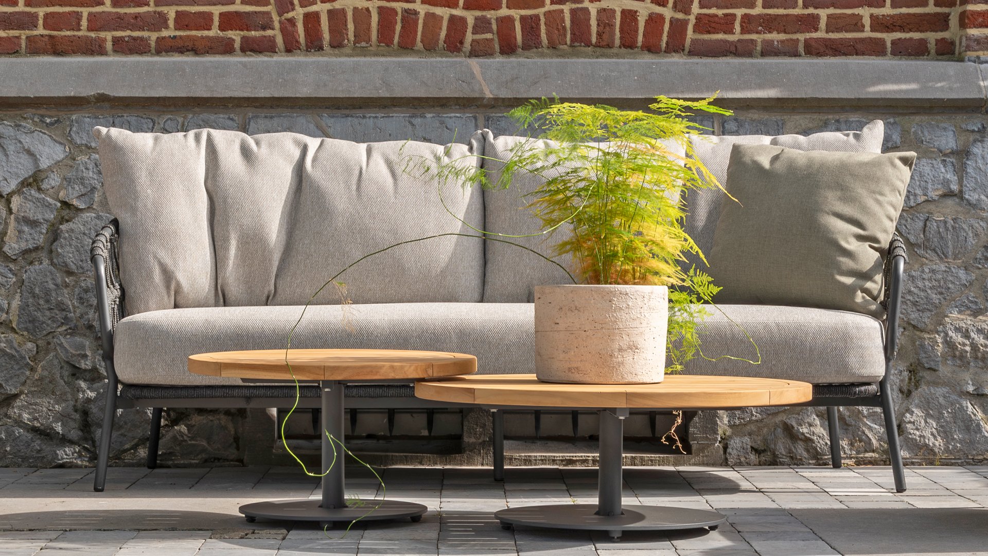 Dieses wunderschöne Material eignet sich perfekt für den Außenbereich, denn Rope ist nicht nur eine normale Spitze, an der Sie Ihre Schuhe binden können. Unsere runden Fäden sind mit einem Kunststoffkern versehen. Diese Basis aus Polypropylen sorgt dafür, dass sich das Rope minimal dehnt und sie nimmt außerdem keine Feuchtigkeit auf. Die Umhüllung besteht aus Acrylstoff, der mit dem wetterfesten Stoff unserer Gartenkissen vergleichbar ist. Diese Umhüllung fühlt sich weich an und ist sehr wasserabweisend, UV-beständig und farbecht. Die flachen Rope-Varianten besitzen den gleichen wetterfesten Materialmix, doch das Polypropylen-Material wurde hier mit dem Acryl-Stoff verwebt. Durch diese Technik besitzt das flache Rope die gleichen Eigenschaften, hat jedoch eine ganz andere Ausstrahlung.