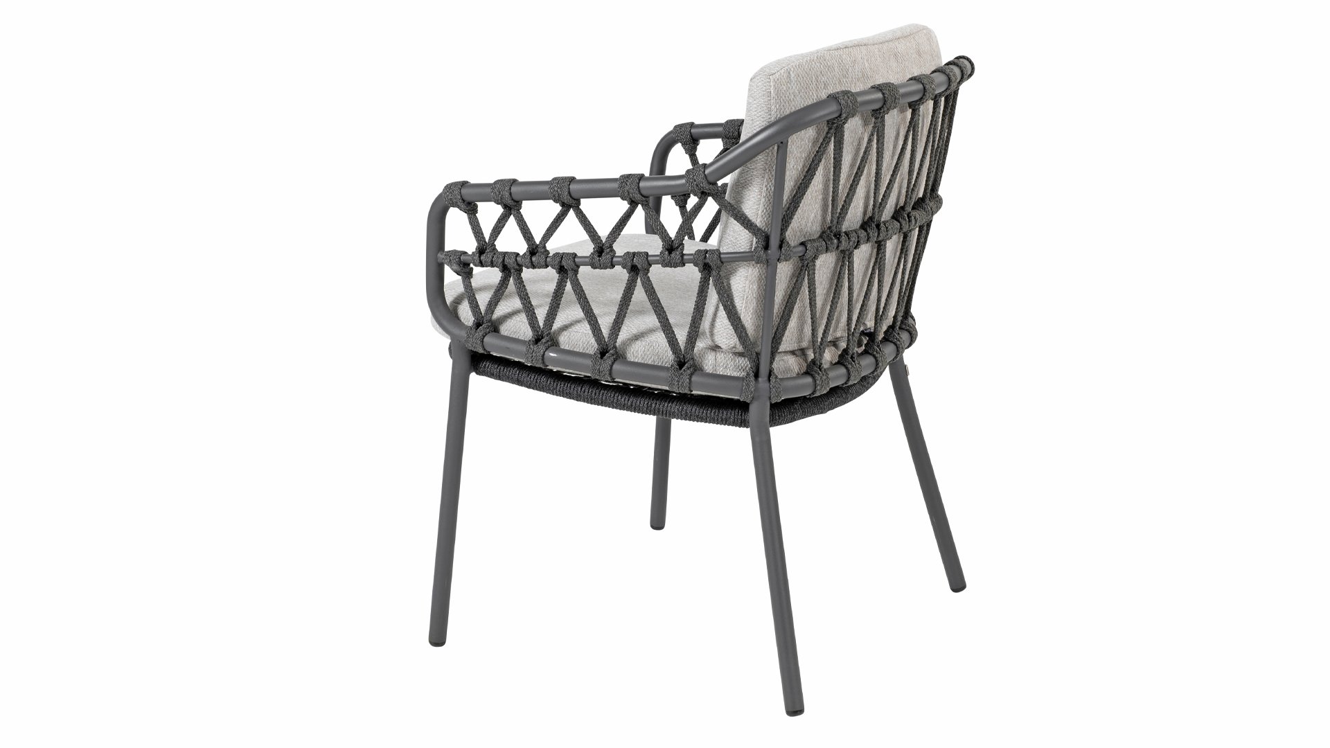 Das Calpi Dining von 4 Seasons Outdoor hat ein zeitgemäßes Design und verleiht jeder Terrasse den hochwertigen Look, den Sie suchen. Die breiten Seilpartien sind auf originelle Weise gewebt und verleihen dem Calpi einen offenen Charakter. Der Calpi wird mit einem Sitz- und Rückenkissen aus wetterfestem Stoff geliefert. Dieser Stoff wirkt wasser- und schmutzabweisend und ist somit widerstandsfähig gegen viele Witterungseinflüsse.