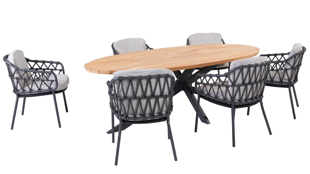 1 x Taste Prado Ellips Tisch 240x115cm Teak-Alu Anthrazit