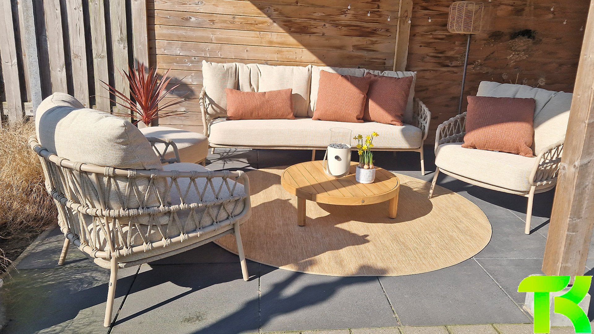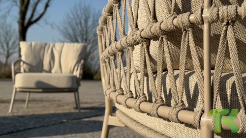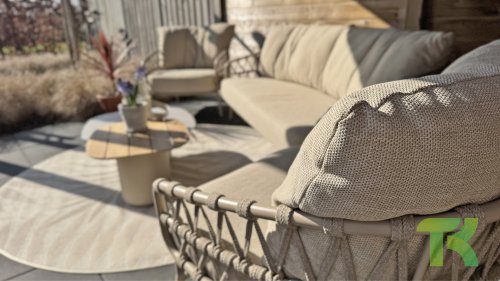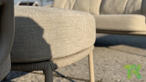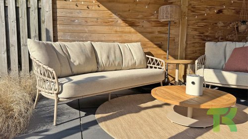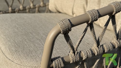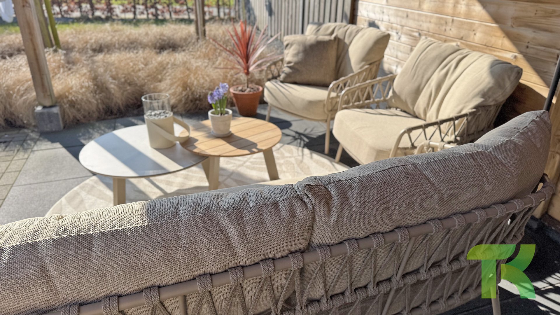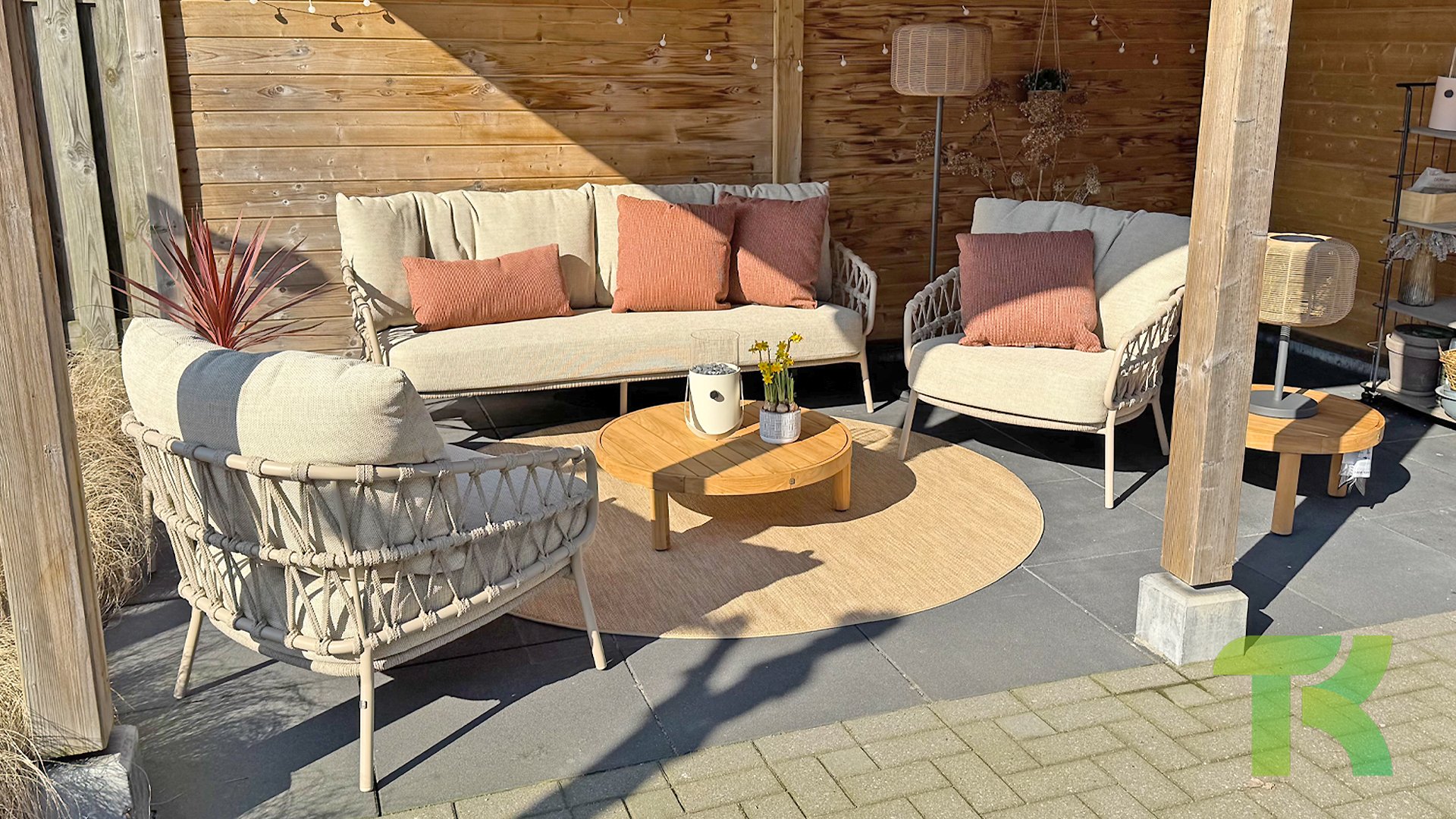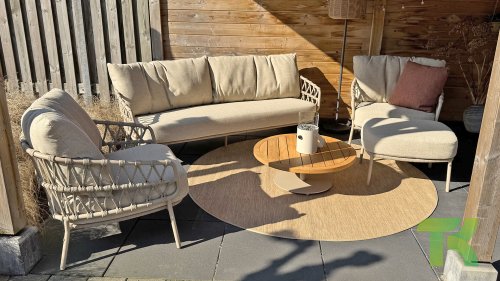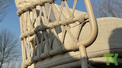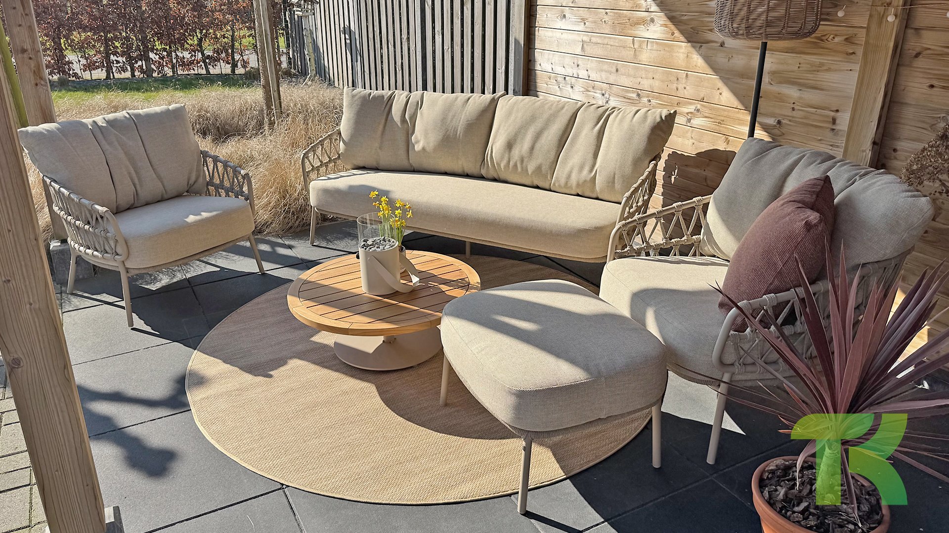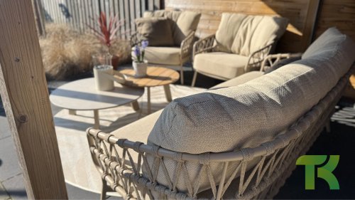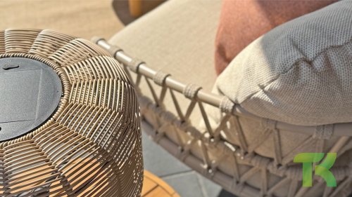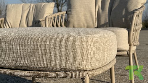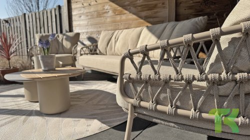 Die 4 Seasons Outdoor Calpi-Serie im neuen Gewand, Latte. Nur bei Gartenmöbel-Rabatt erhältlich! Es verfügt über ein modernes Design und verleiht jeder Terrasse das hochwertige und warme Aussehen, das Sie suchen. Die breiten Seilteile sind auf originelle Weise geflochten und verleihen dem Calpi einen offenen Charakter. Der 4Seasons Calpi wird mit Kissen aus Allwetterstoff geliefert. Dieser Stoff wirkt wasser- und schmutzabweisend und ist somit resistent gegen viele Witterungseinflüsse.