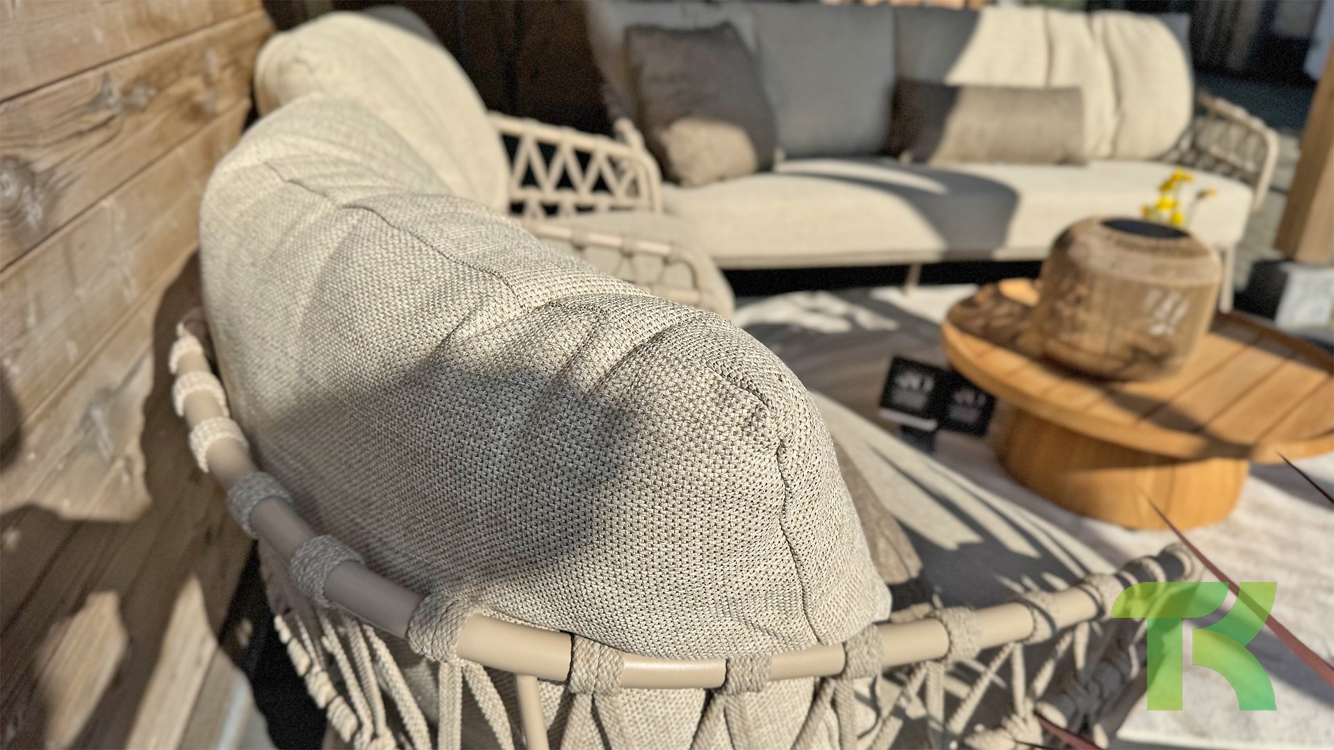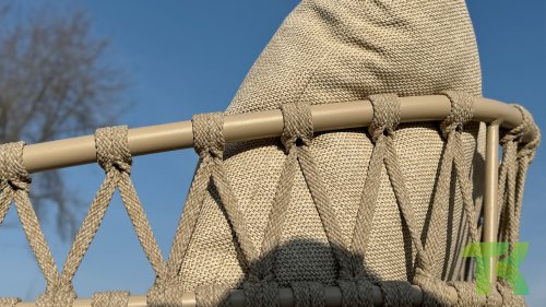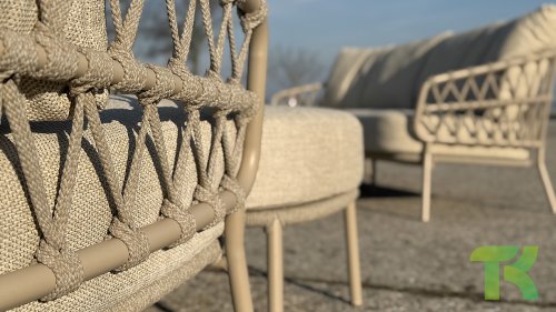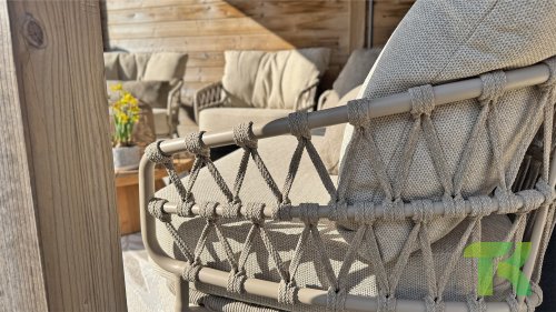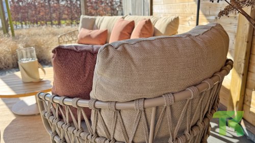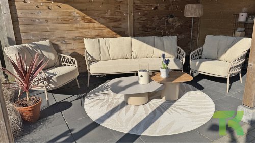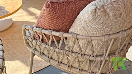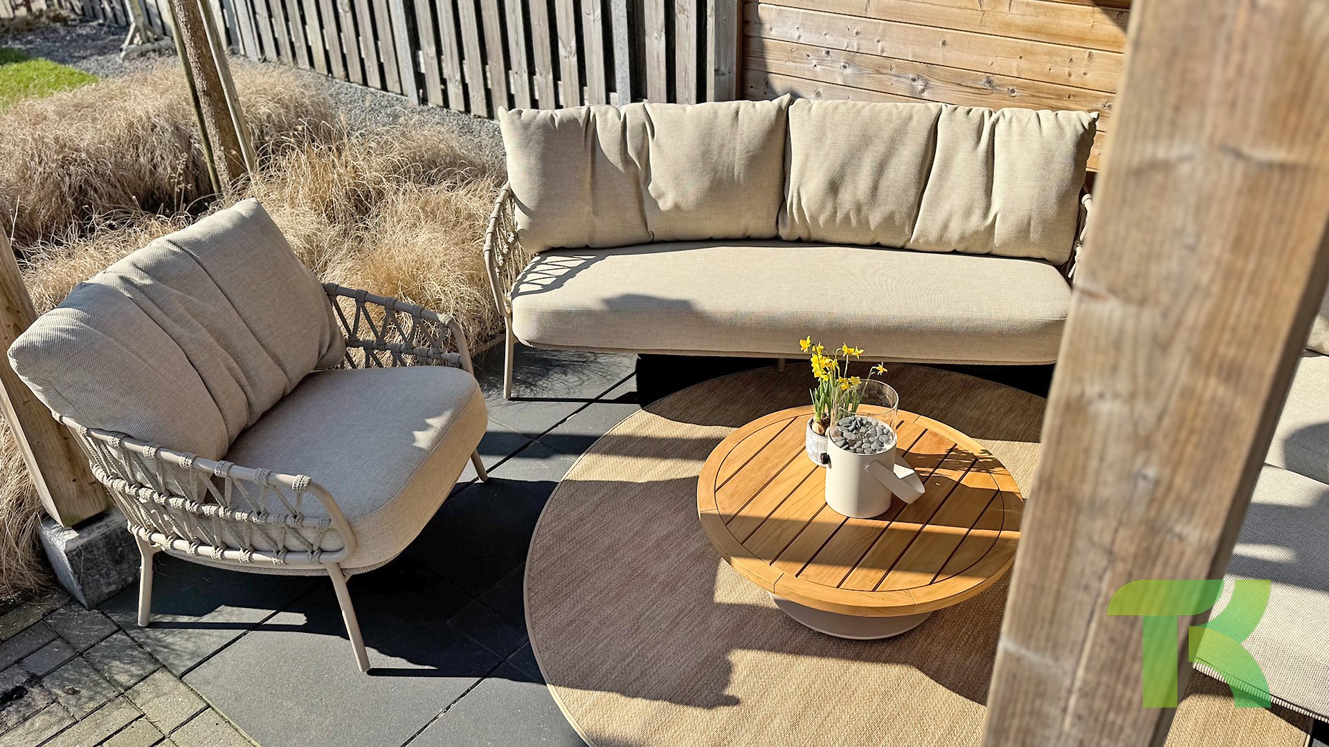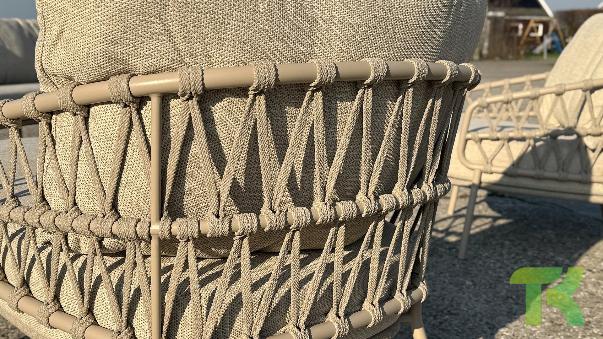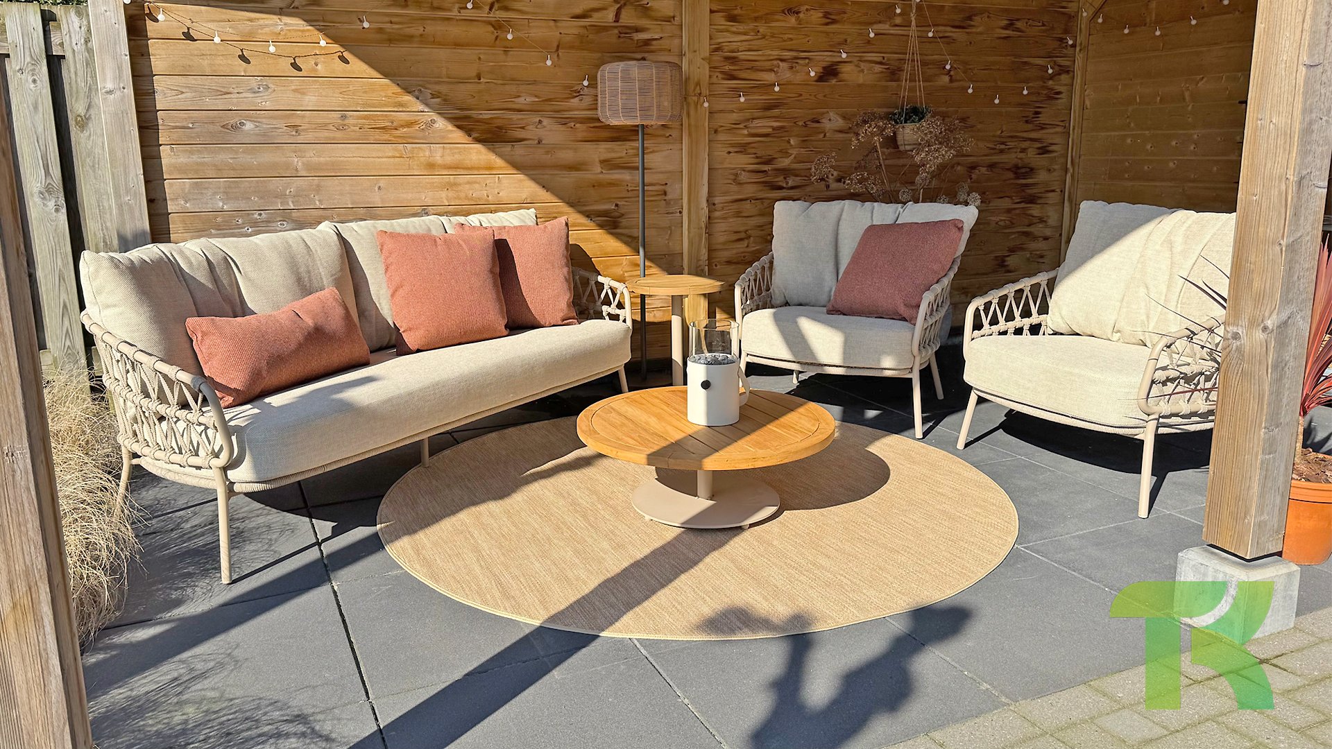 Die 4 Seasons Outdoor Calpi-Serie im neuen Gewand, Latte. Nur bei Gartenmöbel-Rabatt erhältlich! Es verfügt über ein modernes Design und verleiht jeder Terrasse das hochwertige und warme Aussehen, das Sie suchen. Die breiten Seilteile sind auf originelle Weise geflochten und verleihen dem Calpi einen offenen Charakter. Der 4Seasons Calpi wird mit Kissen aus Allwetterstoff geliefert. Dieser Stoff wirkt wasser- und schmutzabweisend und ist somit resistent gegen viele Witterungseinflüsse.