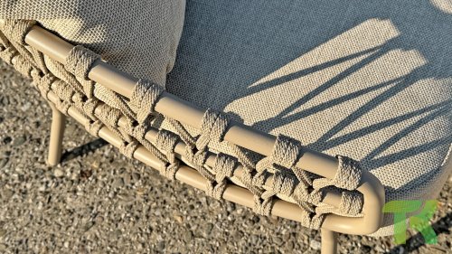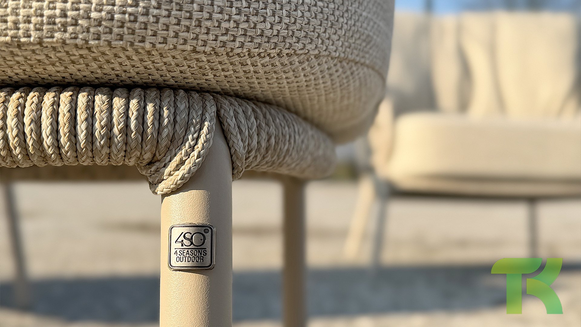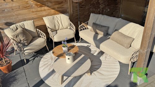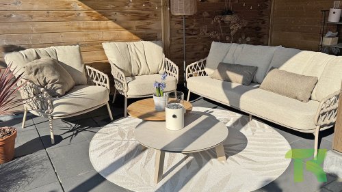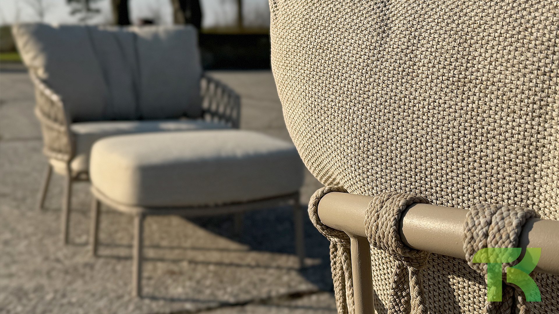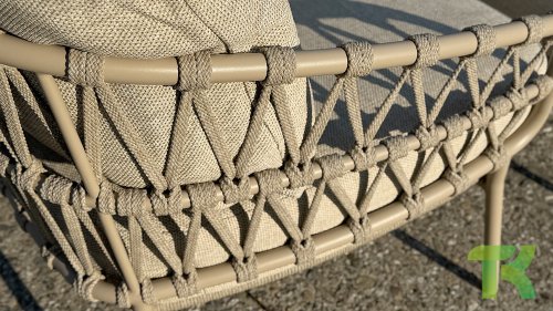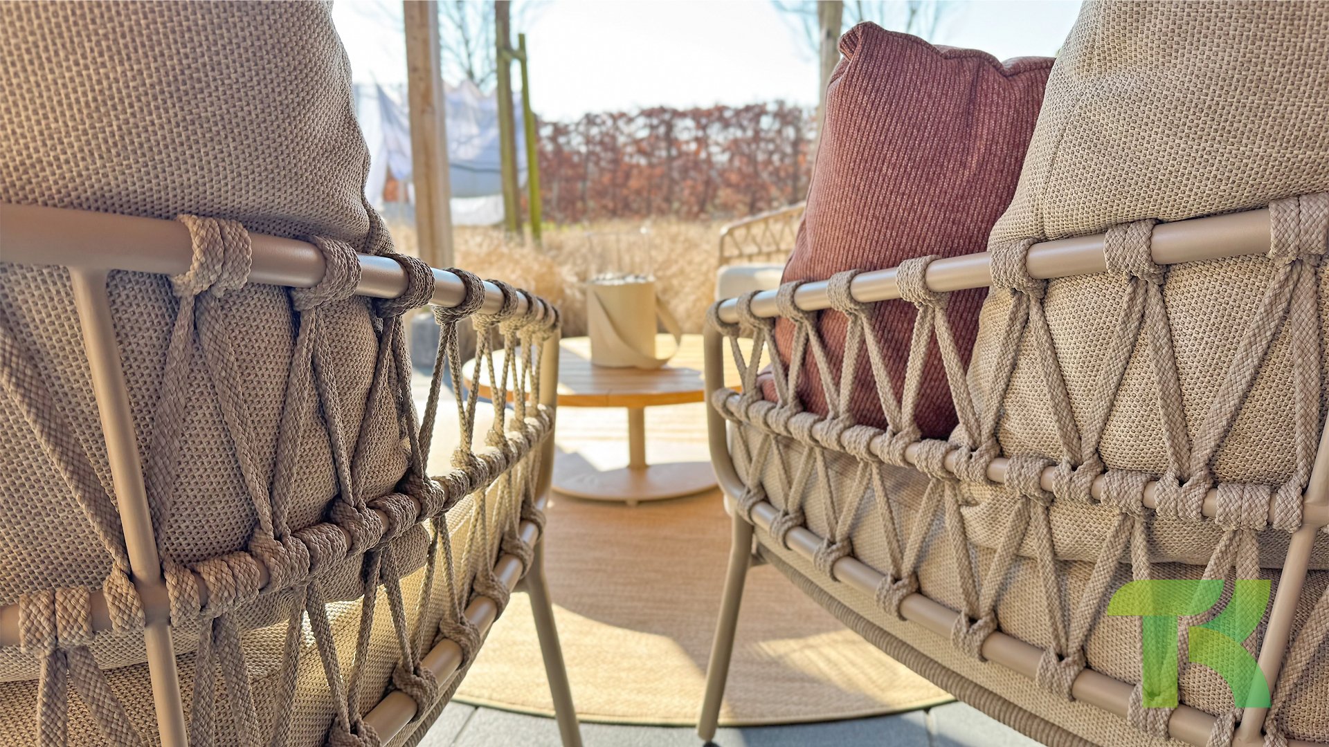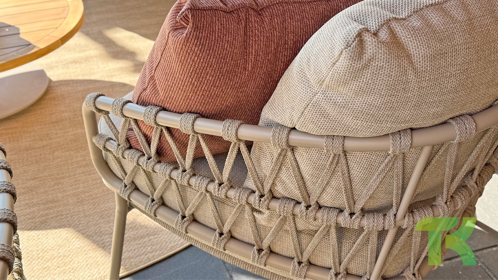 Die 4 Seasons Outdoor Calpi-Serie im neuen Gewand, Latte. Nur bei Gartenmöbel-Rabatt erhältlich! Es verfügt über ein modernes Design und verleiht jeder Terrasse das hochwertige und warme Aussehen, das Sie suchen. Die breiten Seilteile sind auf originelle Weise geflochten und verleihen dem Calpi einen offenen Charakter. Der 4Seasons Calpi wird mit Kissen aus Allwetterstoff geliefert. Dieser Stoff wirkt wasser- und schmutzabweisend und ist somit resistent gegen viele Witterungseinflüsse.