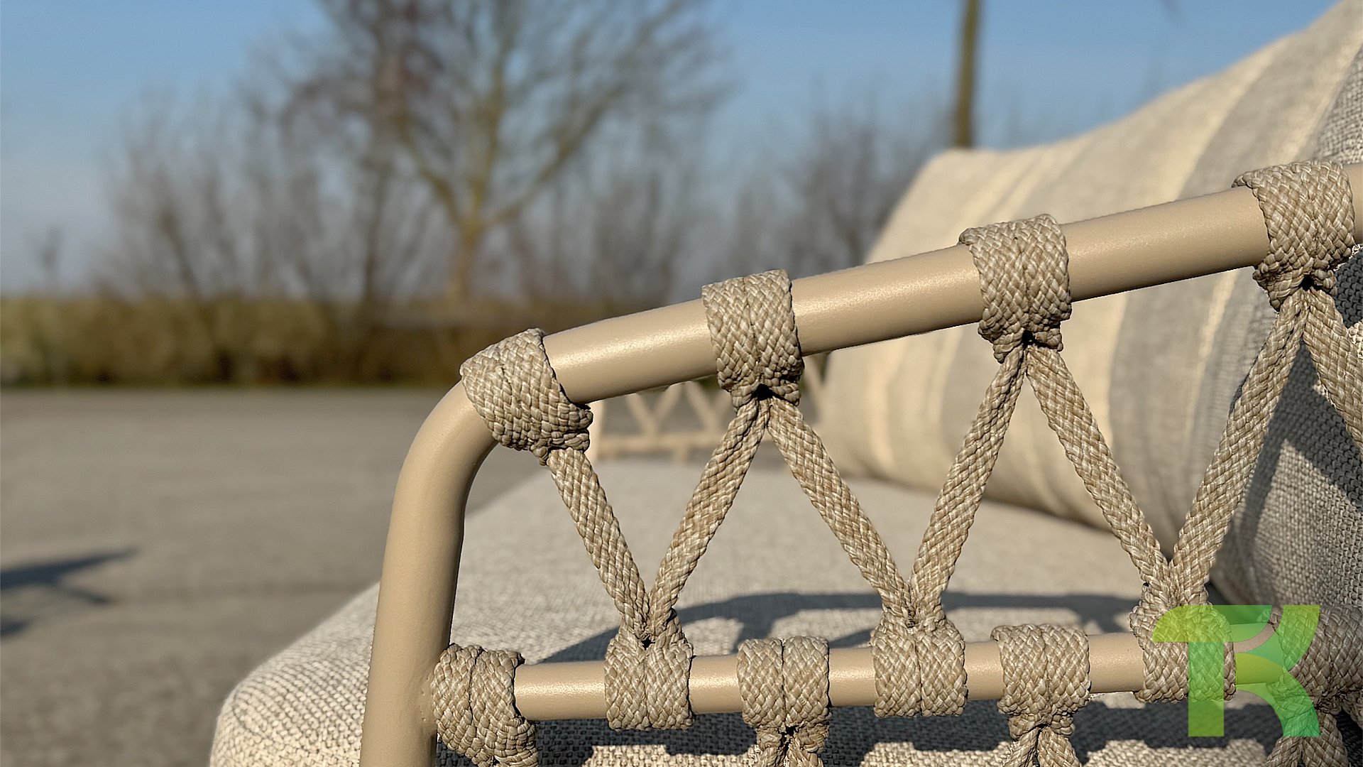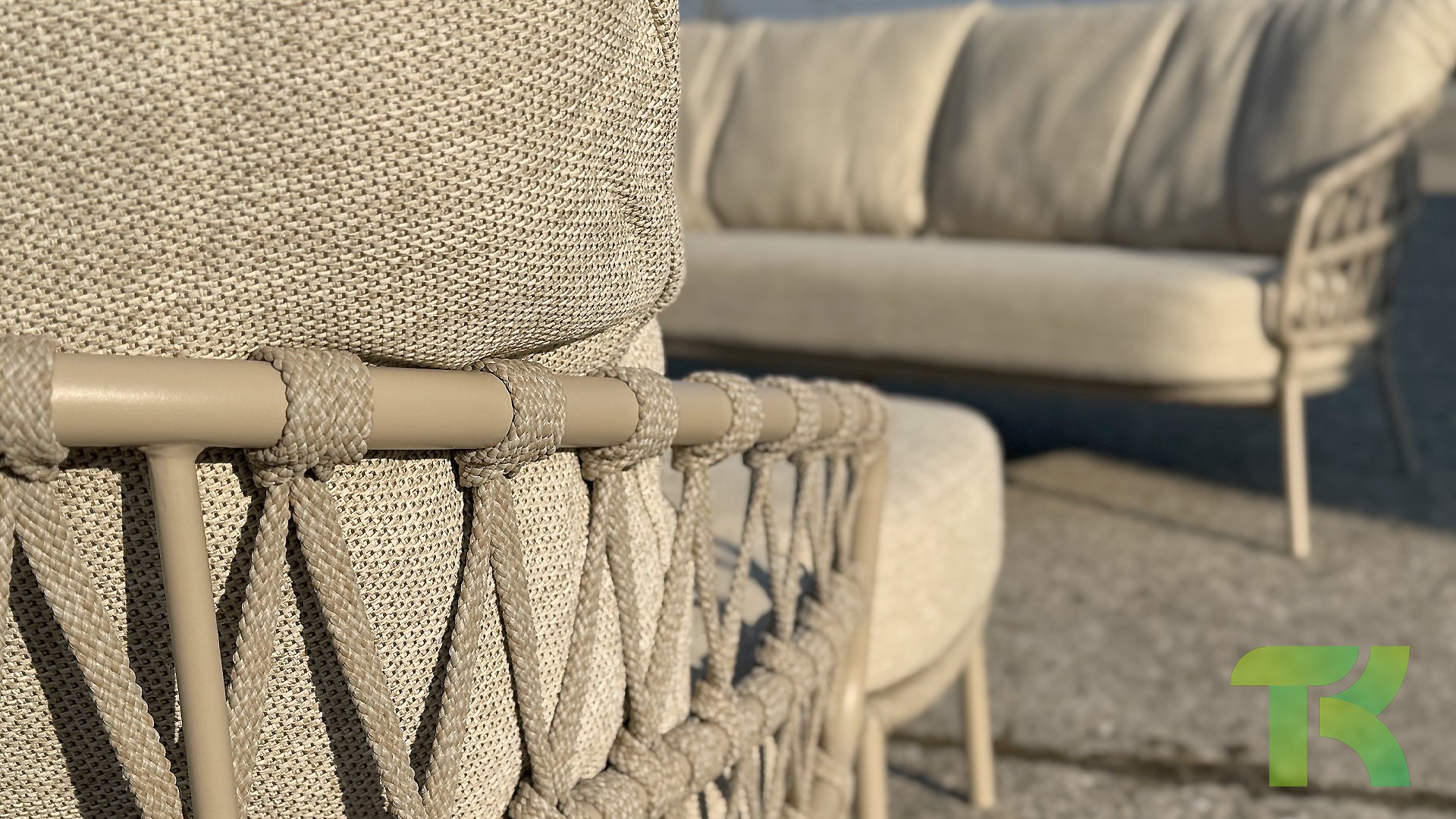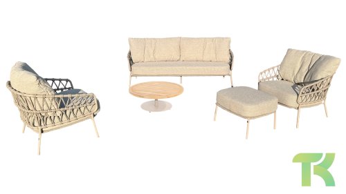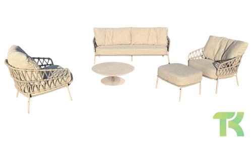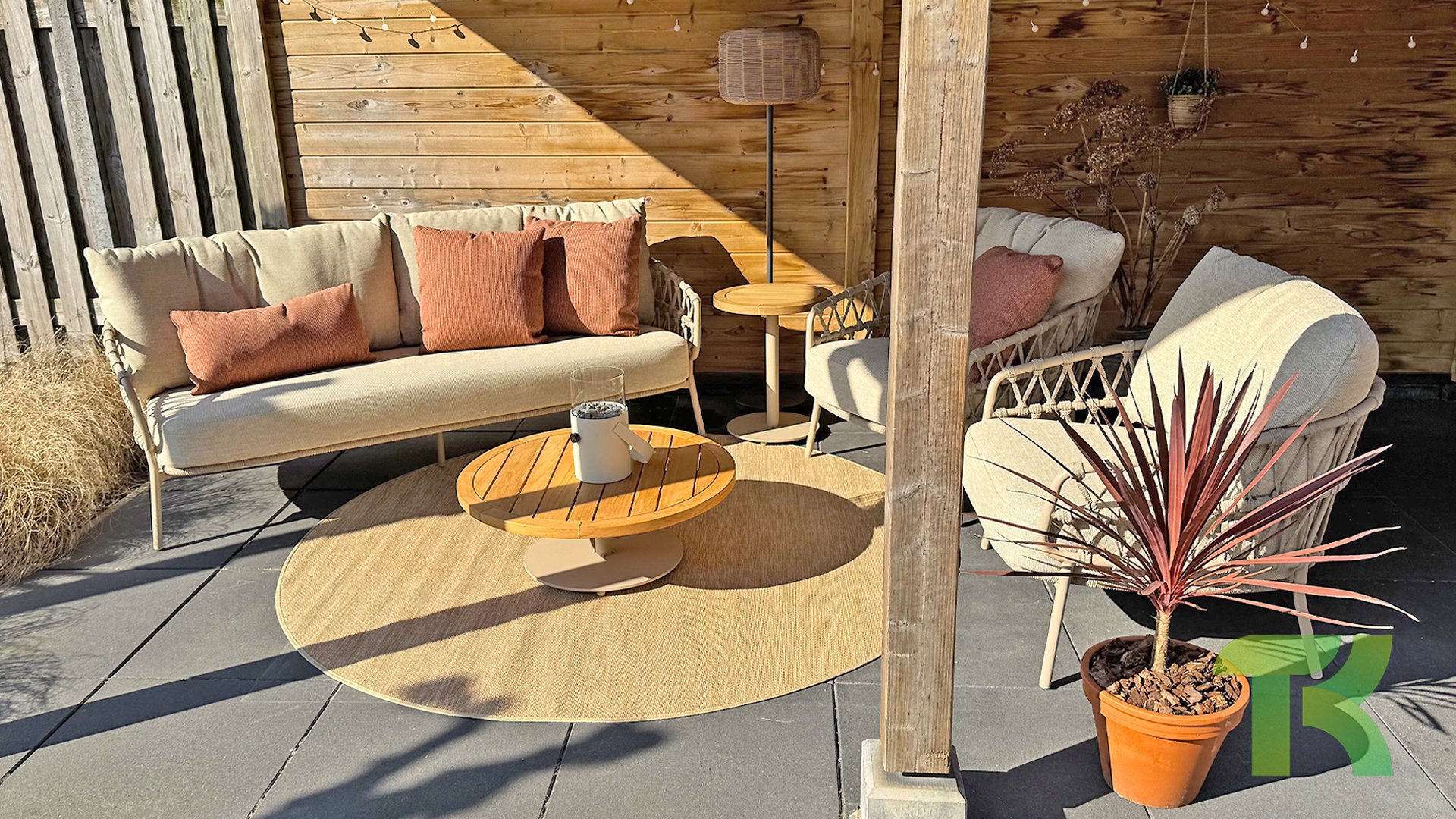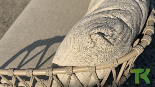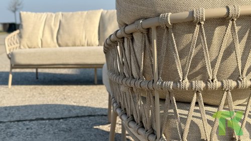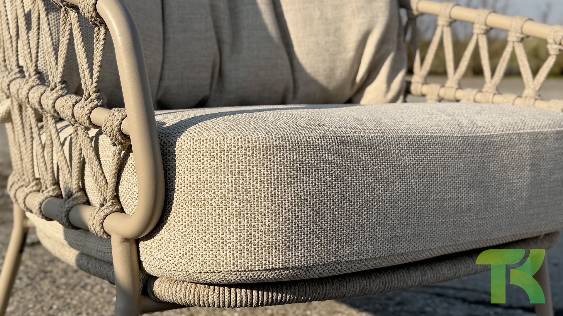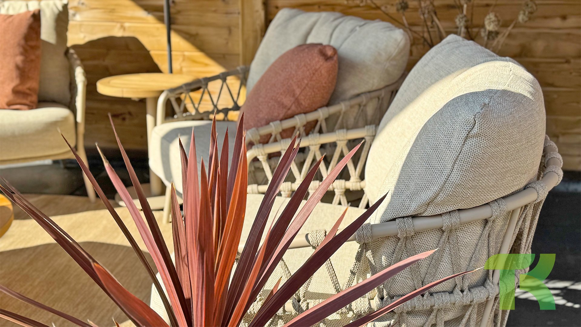 Die 4 Seasons Outdoor Calpi-Serie im neuen Gewand, Latte. Nur bei Gartenmöbel-Rabatt erhältlich! Es verfügt über ein modernes Design und verleiht jeder Terrasse das hochwertige und warme Aussehen, das Sie suchen. Die breiten Seilteile sind auf originelle Weise geflochten und verleihen dem Calpi einen offenen Charakter. Der 4Seasons Calpi wird mit Kissen aus Allwetterstoff geliefert. Dieser Stoff wirkt wasser- und schmutzabweisend und ist somit resistent gegen viele Witterungseinflüsse.