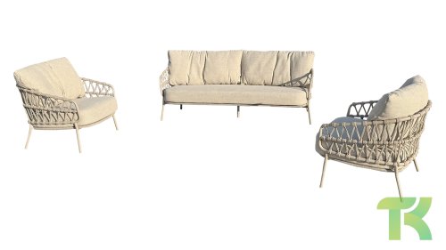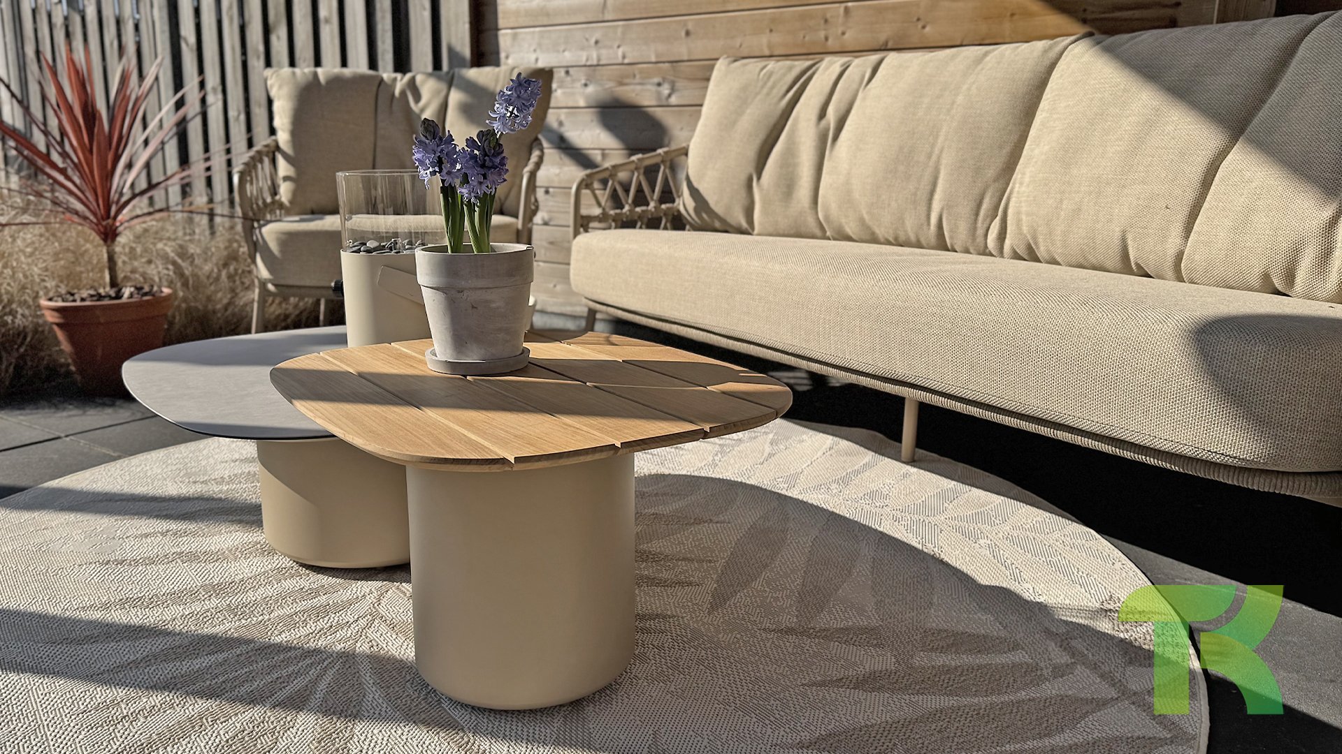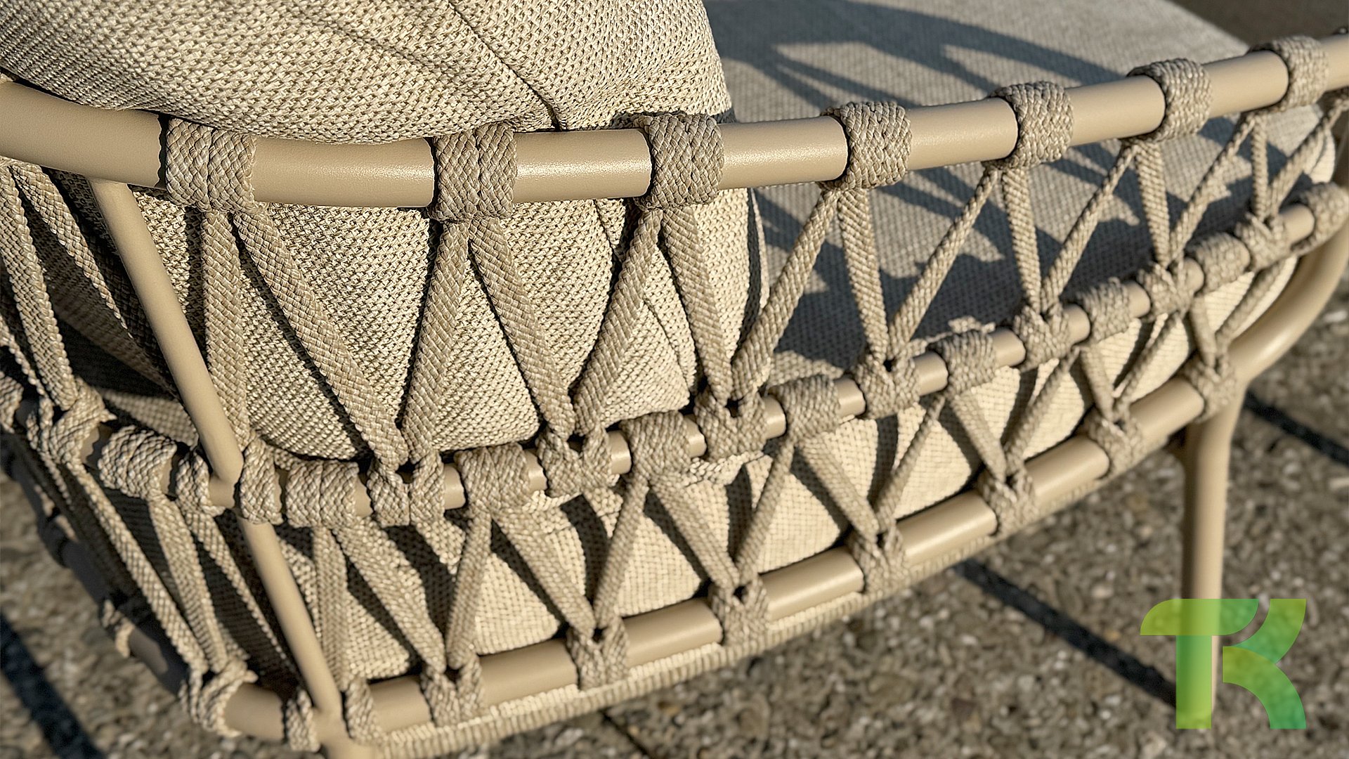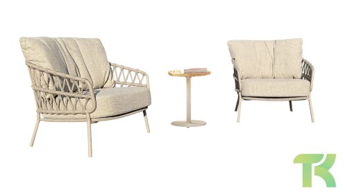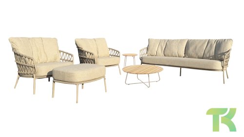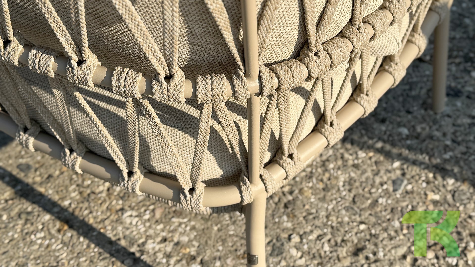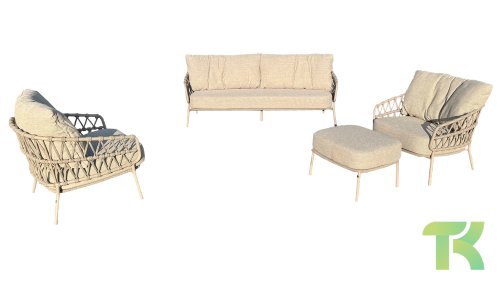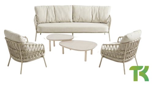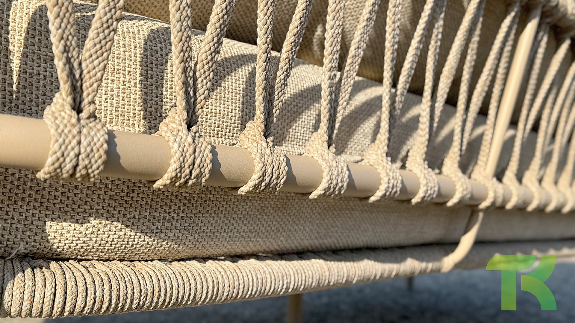 Die 4 Seasons Outdoor Calpi-Serie im neuen Gewand, Latte. Nur bei Gartenmöbel-Rabatt erhältlich! Es verfügt über ein modernes Design und verleiht jeder Terrasse das hochwertige und warme Aussehen, das Sie suchen. Die breiten Seilteile sind auf originelle Weise geflochten und verleihen dem Calpi einen offenen Charakter. Der 4Seasons Calpi wird mit Kissen aus Allwetterstoff geliefert. Dieser Stoff wirkt wasser- und schmutzabweisend und ist somit resistent gegen viele Witterungseinflüsse.