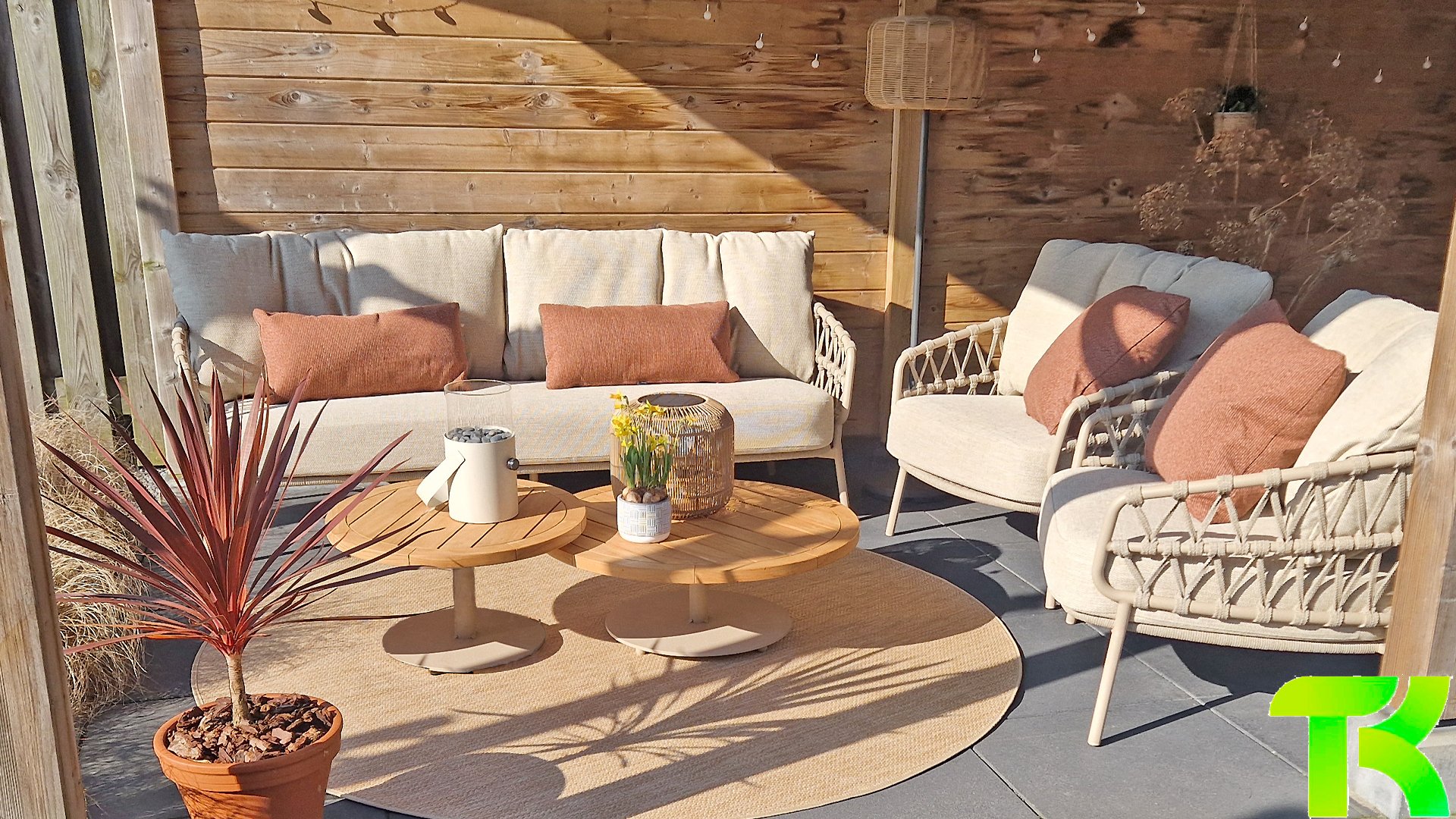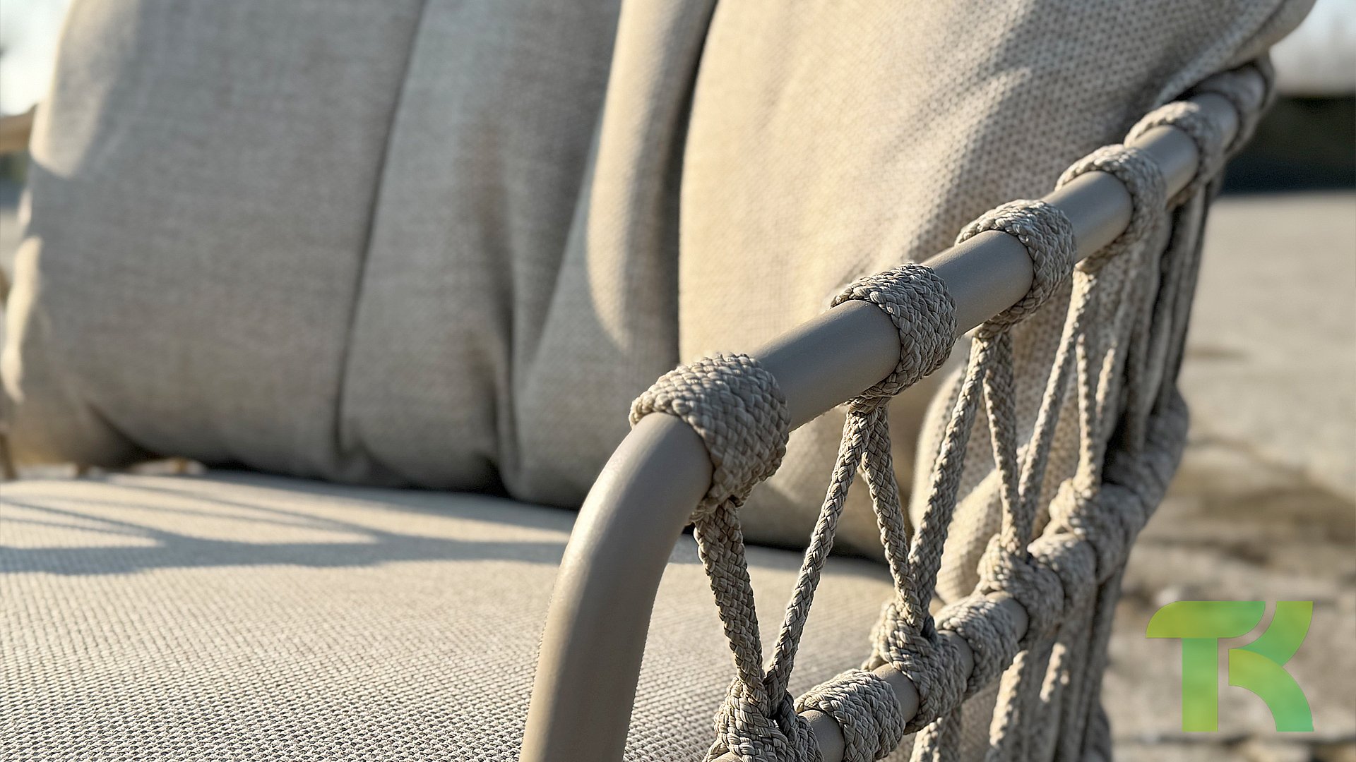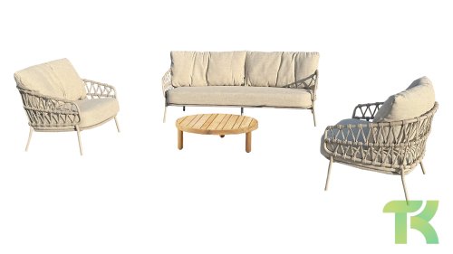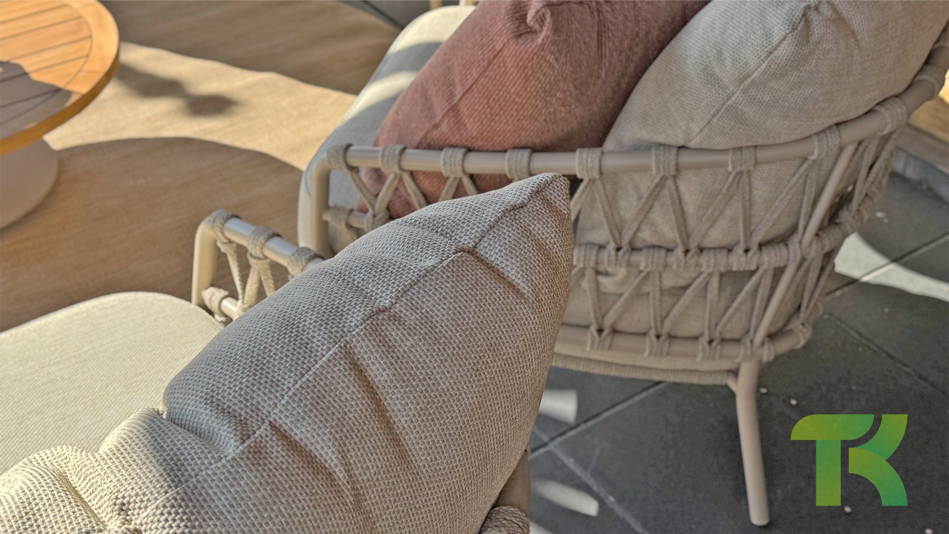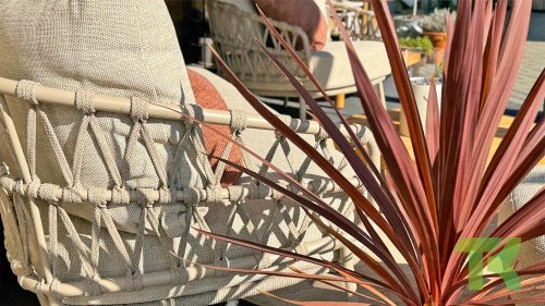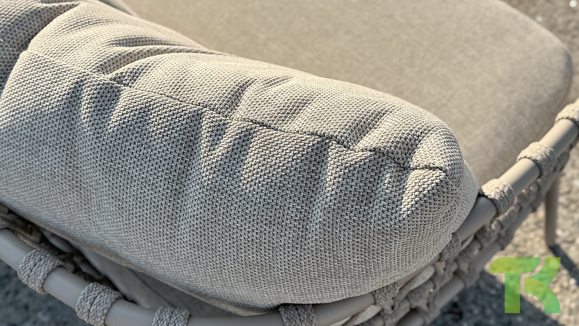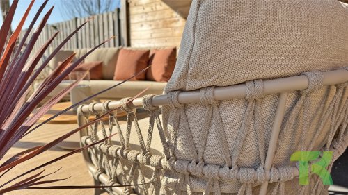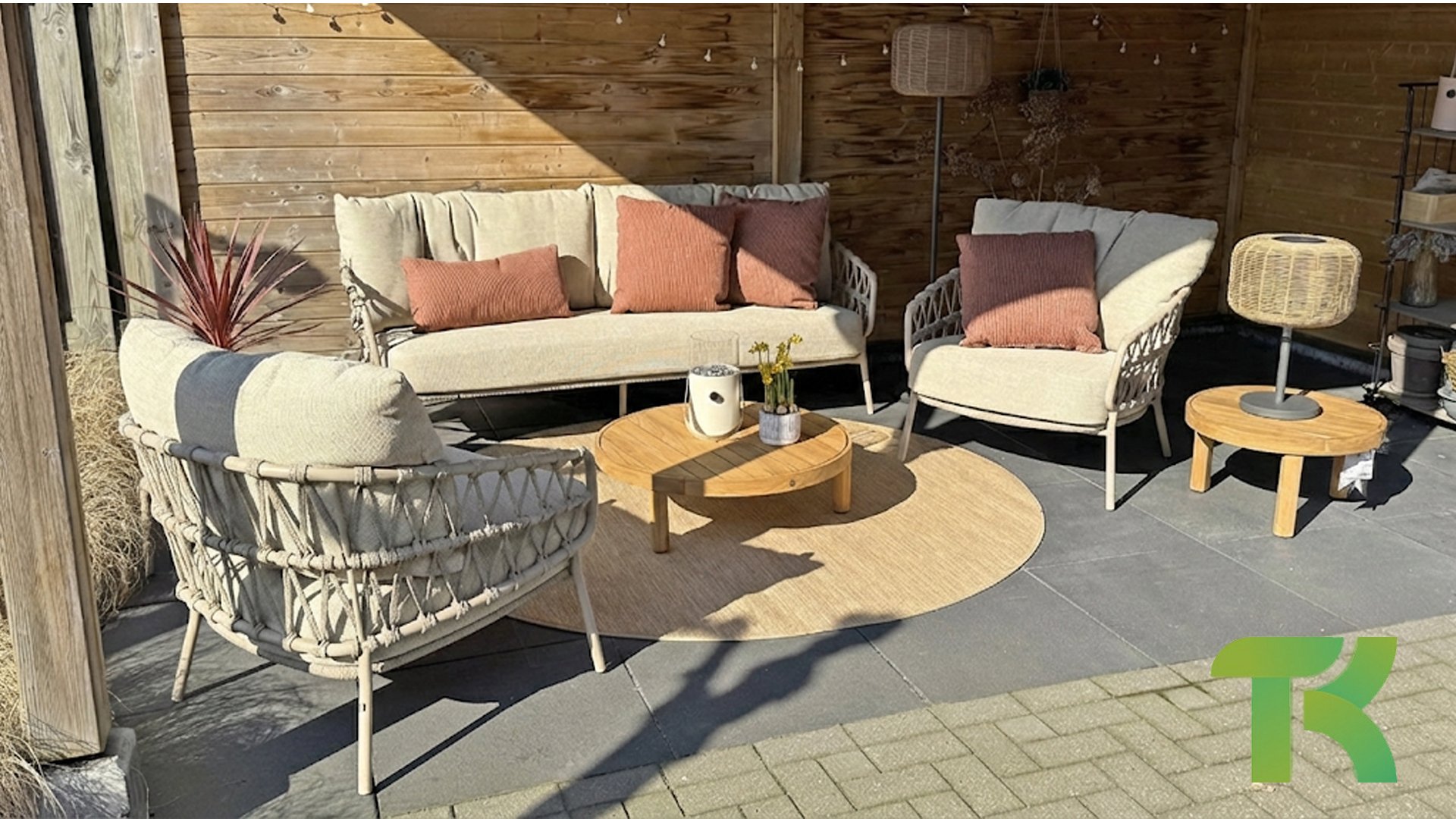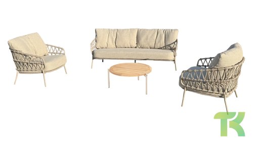 Die 4 Seasons Outdoor Calpi-Serie im neuen Gewand, Latte. Nur bei Gartenmöbel-Rabatt erhältlich! Es verfügt über ein modernes Design und verleiht jeder Terrasse das hochwertige und warme Aussehen, das Sie suchen. Die breiten Seilteile sind auf originelle Weise geflochten und verleihen dem Calpi einen offenen Charakter. Der 4Seasons Calpi wird mit Kissen aus Allwetterstoff geliefert. Dieser Stoff wirkt wasser- und schmutzabweisend und ist somit resistent gegen viele Witterungseinflüsse.