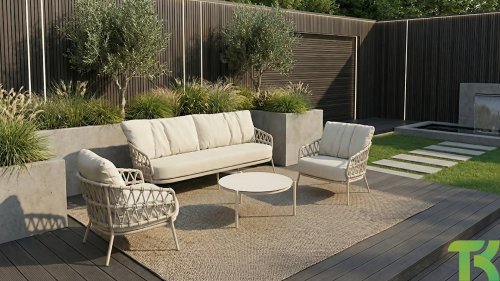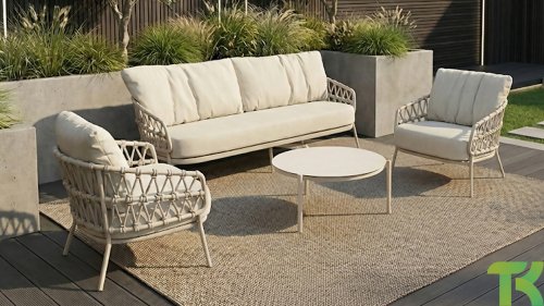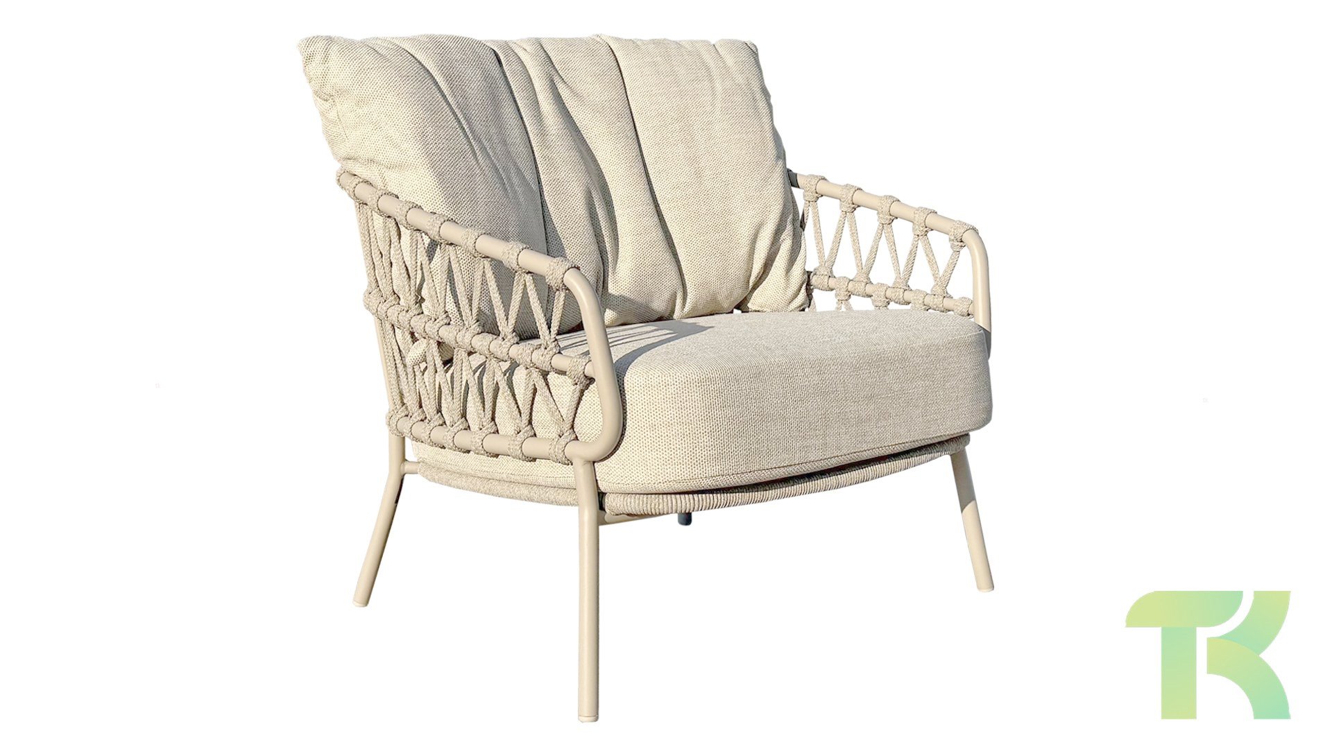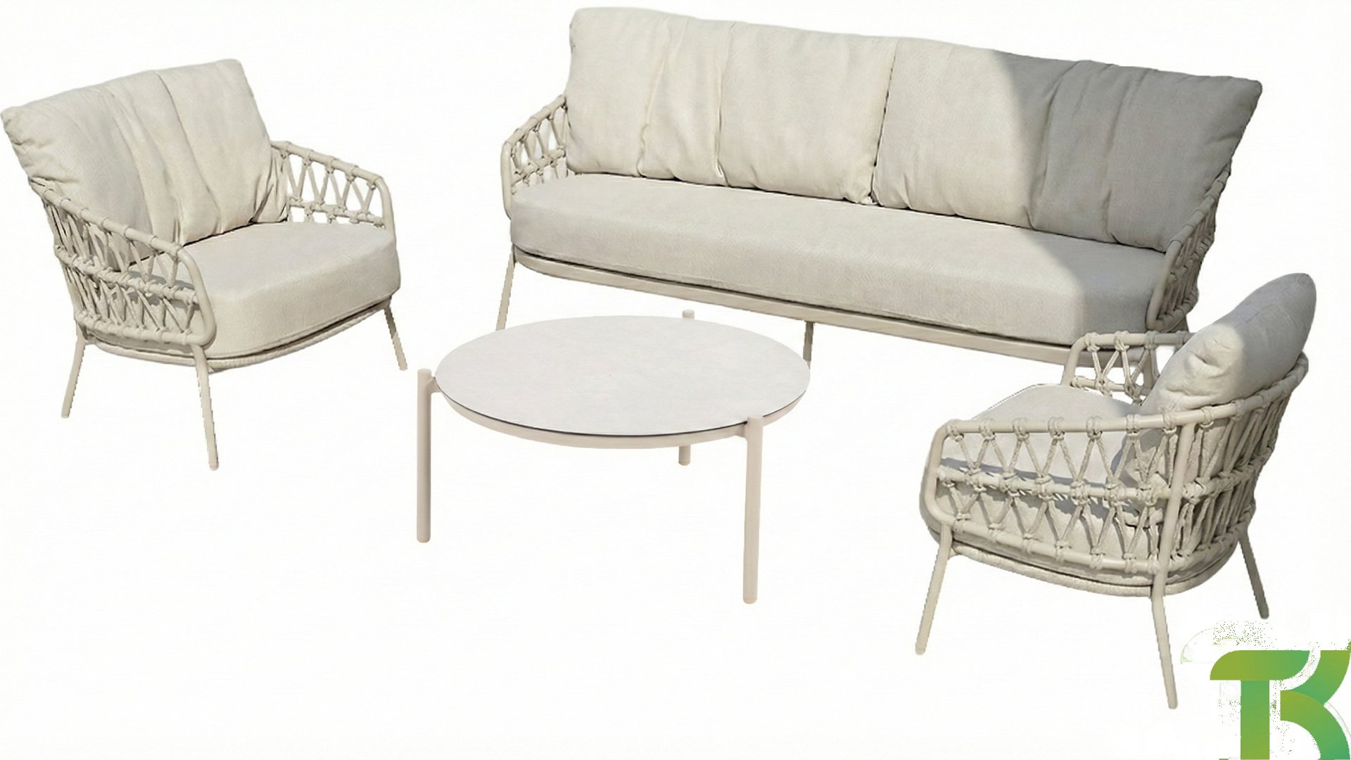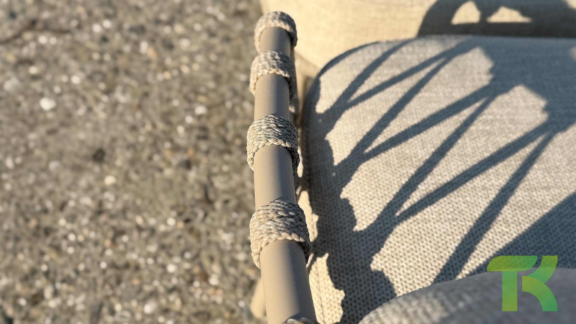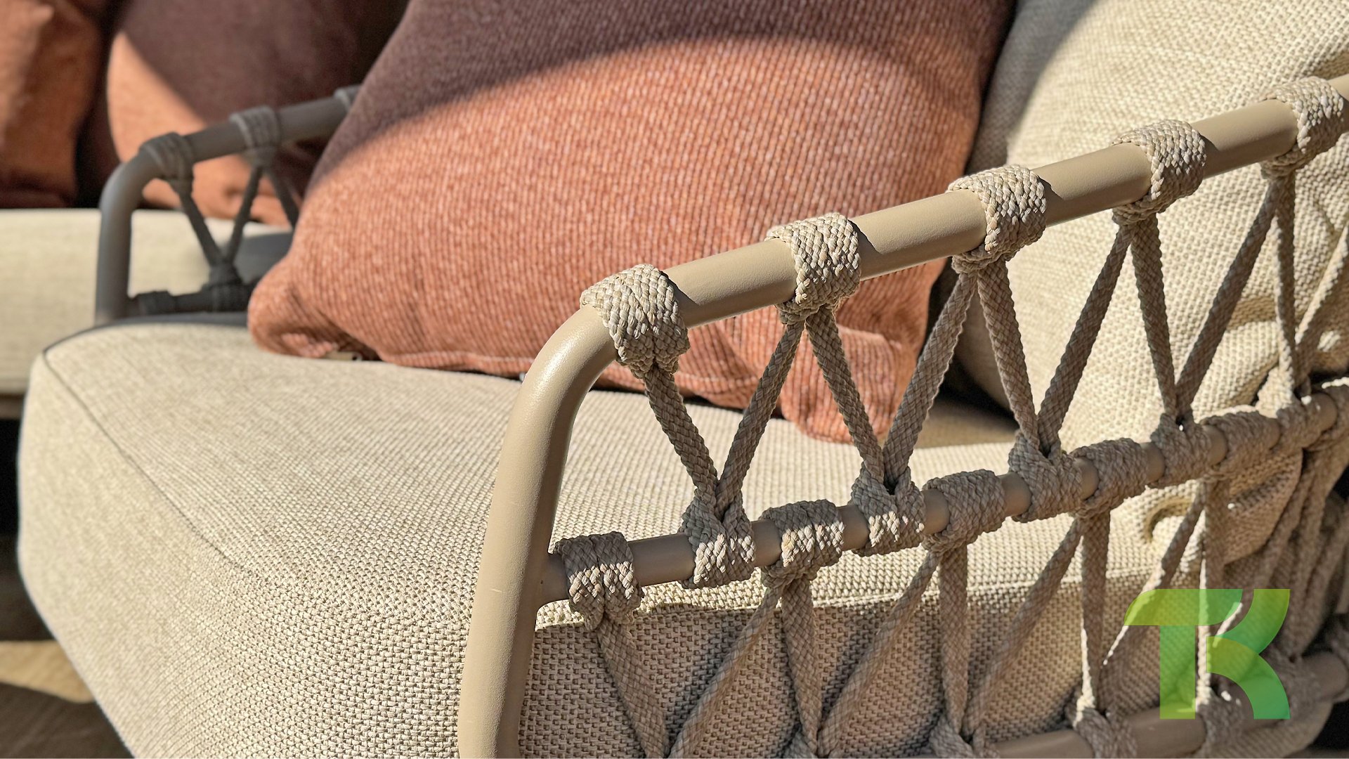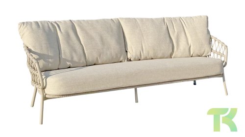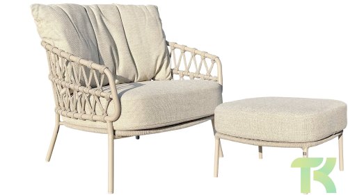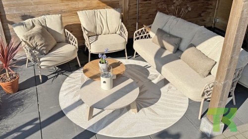 Die 4 Seasons Outdoor Calpi-Serie im neuen Gewand, Latte. Nur bei Gartenmöbel-Rabatt erhältlich! Es verfügt über ein modernes Design und verleiht jeder Terrasse das hochwertige und warme Aussehen, das Sie suchen. Die breiten Seilteile sind auf originelle Weise geflochten und verleihen dem Calpi einen offenen Charakter. Der 4Seasons Calpi wird mit Kissen aus Allwetterstoff geliefert. Dieser Stoff wirkt wasser- und schmutzabweisend und ist somit resistent gegen viele Witterungseinflüsse.