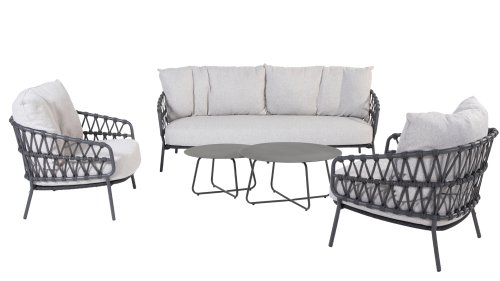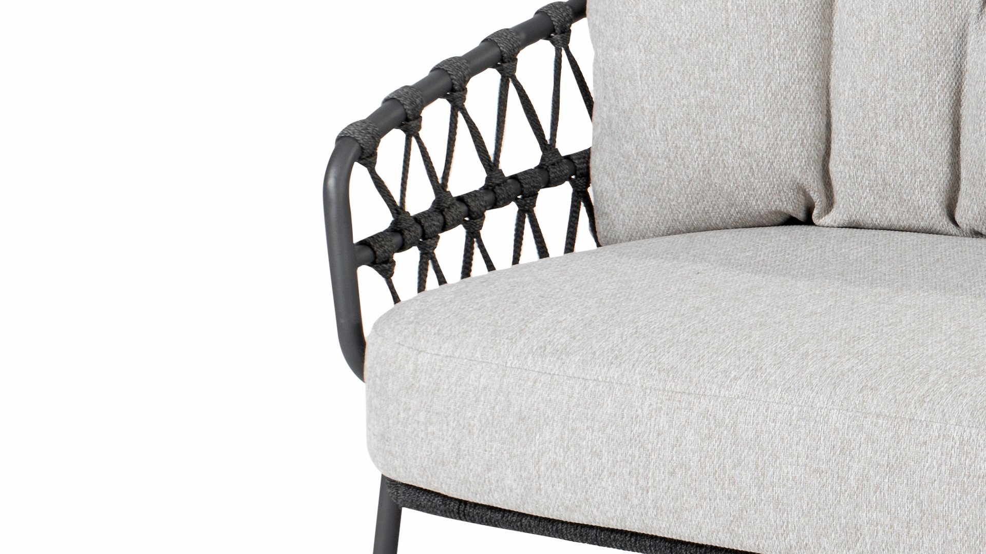Die Calpi Lounge-Serie von 4 Seasons Outdoor, verfügbar im Anthrazit und Latte. Es hat ein zeitgemäßes Design und verleiht jeder Terrasse den Premium-Look, den Sie suchen. Die breiten Seilteile sind auf originelle Weise geflochten und verleihen dem Calpi einen offenen Charakter. Der 4Seasons Calpi wird mit Kissen aus Allwetterstoff geliefert. Dieser Stoff wirkt wasser- und schmutzabweisend und ist somit resistent gegen viele Witterungseinflüsse. Das Gestell besteht aus pulverbeschichtetem Edelstahl, wodurch sich das Calpi Lounge-Set sehr gut für die ganzjährige Verwendung im Freien eignet. Schauen Sie sich auch das 4SO Calpi Dining oder das 4SO Calpi Low Dining an!