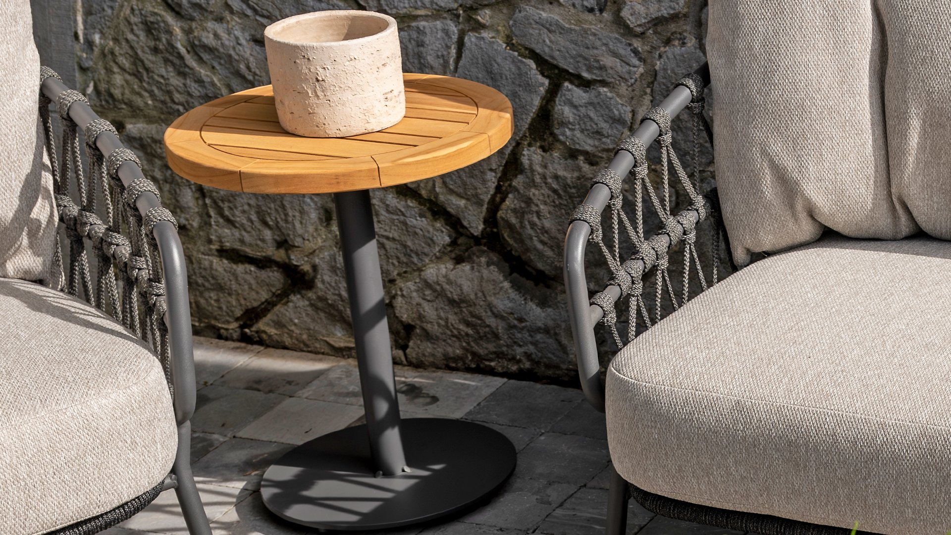 1 x 4Seasons Outdoor Volta Beistelltisch Teak/Alu Anthrazit Ø45xH55cm