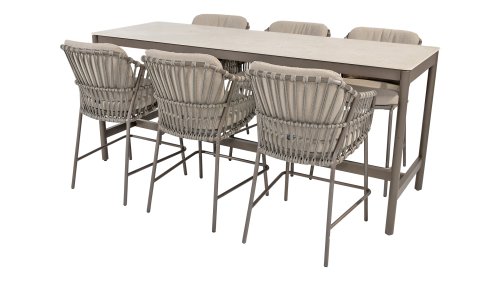 Der 4 Seasons Outdoor Capalbio Counter Chair ist ein stilvoller und funktionaler Stuhl. Dieser Stuhl ist die perfekte Wahl für alle, die sowohl Komfort als auch Haltbarkeit bei Gartenmöbeln suchen. Der Stuhl ist mit einer Sitzfläche ausgestattet, die teilweise mit Seilfäden geflochten ist. Der Rahmen des 4SO Capalbio besteht aus pulverbeschichtetem Edelstahl, der für zusätzliche Stabilität und eine lange Lebensdauer auch unter schwierigsten Wetterbedingungen sorgt.