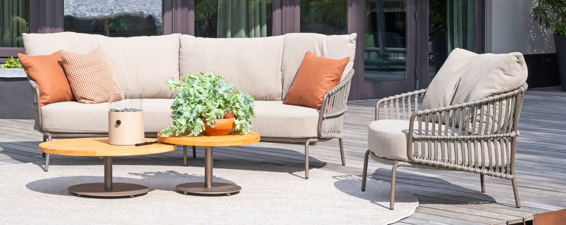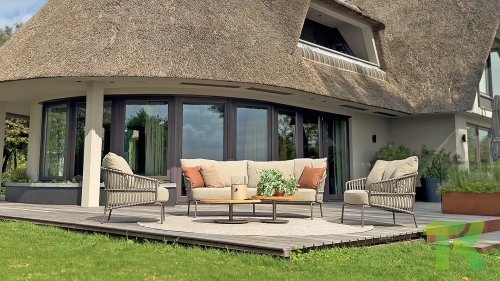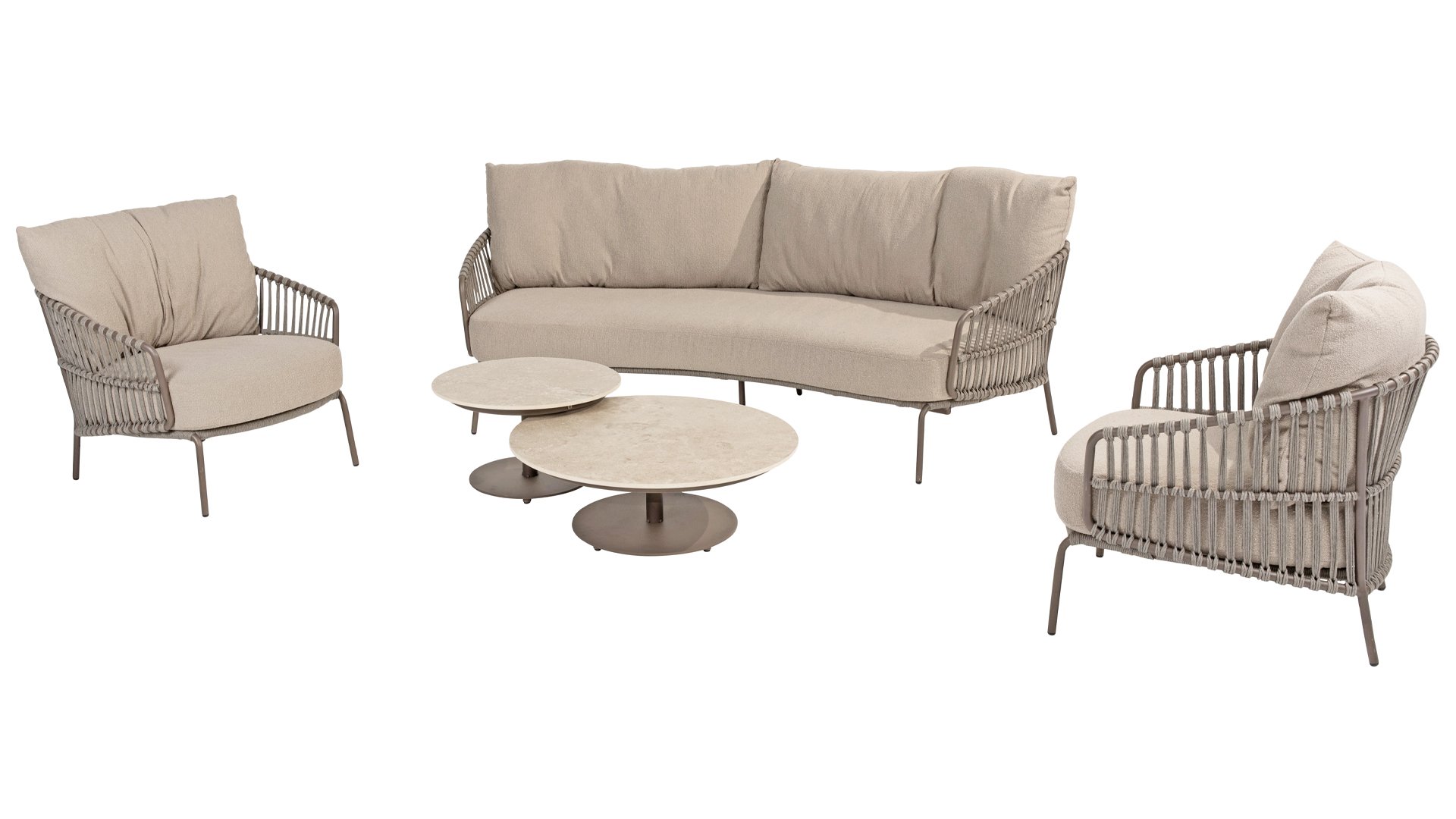 Bringen Sie das toskanische Flair in Ihren Garten mit Capalbio. Das moderne Design der 4 Seasons Outdoor Capalbio loungeset passt wunderbar zu den Erdfarben in Ihrem Garten. Diese Möbelserie kombiniert einen RVS-Rahmen in der Farbe Terre mit wunderschönen Seilmustern und Bouclé-Kissen. Entdecken Sie die umfangreiche Capalbio-Kollektion und gestalten Sie Ihren Garten komplett neu.