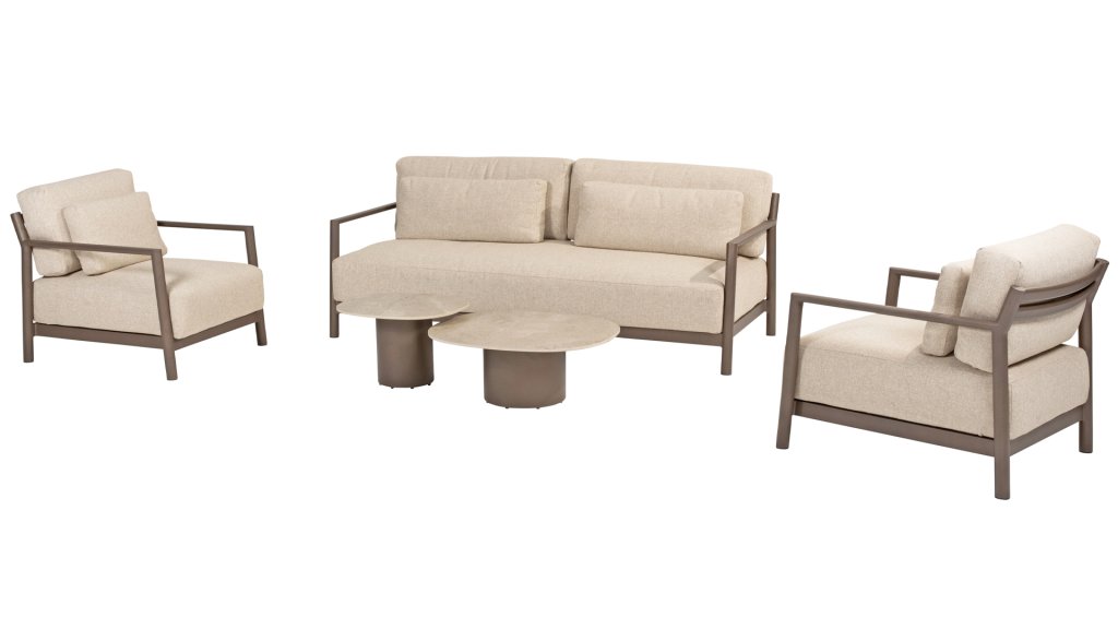 Erleben Sie ultimativen Komfort und stilvolle Schlichtheit mit der Capresi-Loungesets von 4 Seasons Outdoor. Dieses schöne Lounge-Set in der eleganten Terre-Farbe hat ein schlichtes Design, das perfekt zu modernen Gärten passt. Der vollständig aus Aluminium gefertigte Rahmen ist mit erhabenen Kurven gestaltet, während die dicken Lounge-Kissen für einen wunderbaren Kontrast und optimalen Komfort sorgen.