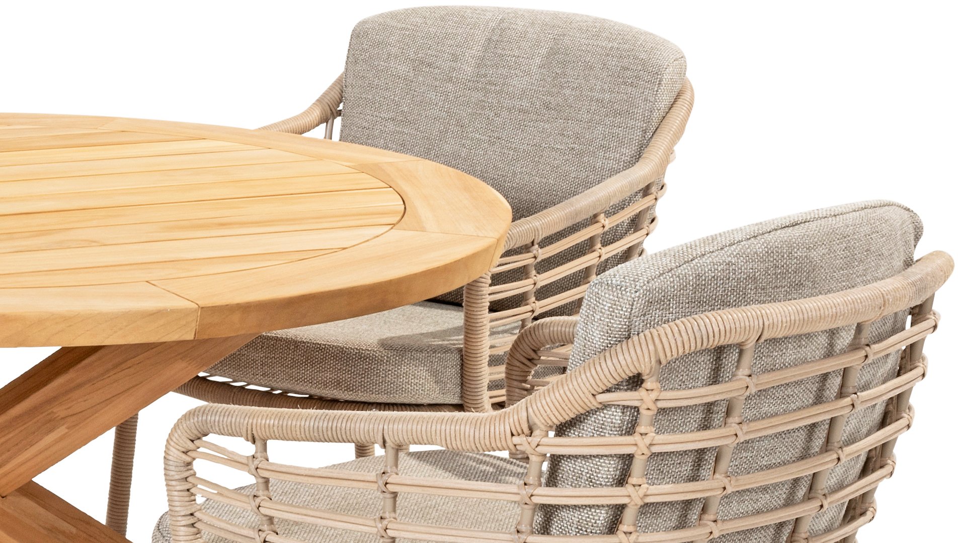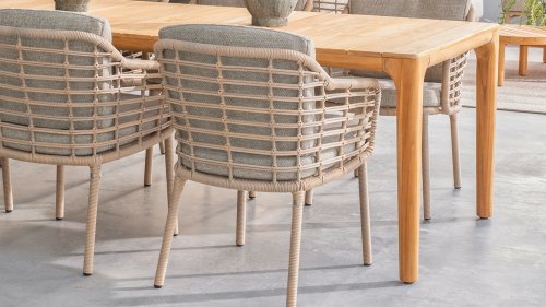Genießen Sie zeitlose Retro-Vibes und natürliche Schönheit mit dem 4 Seasons Outdoor Como Dining Stuhl Harvest. Dieser Stuhl wird mit Kissen geliefert und verfügt über ein stimmungsvolles Taupe-Geflecht und einen langlebigen Aluminiumrahmen. Die natürlichen Töne und das einzigartige 'Harvest'-Geflecht verleihen dem Como Diningstuhl seinen Charakter.