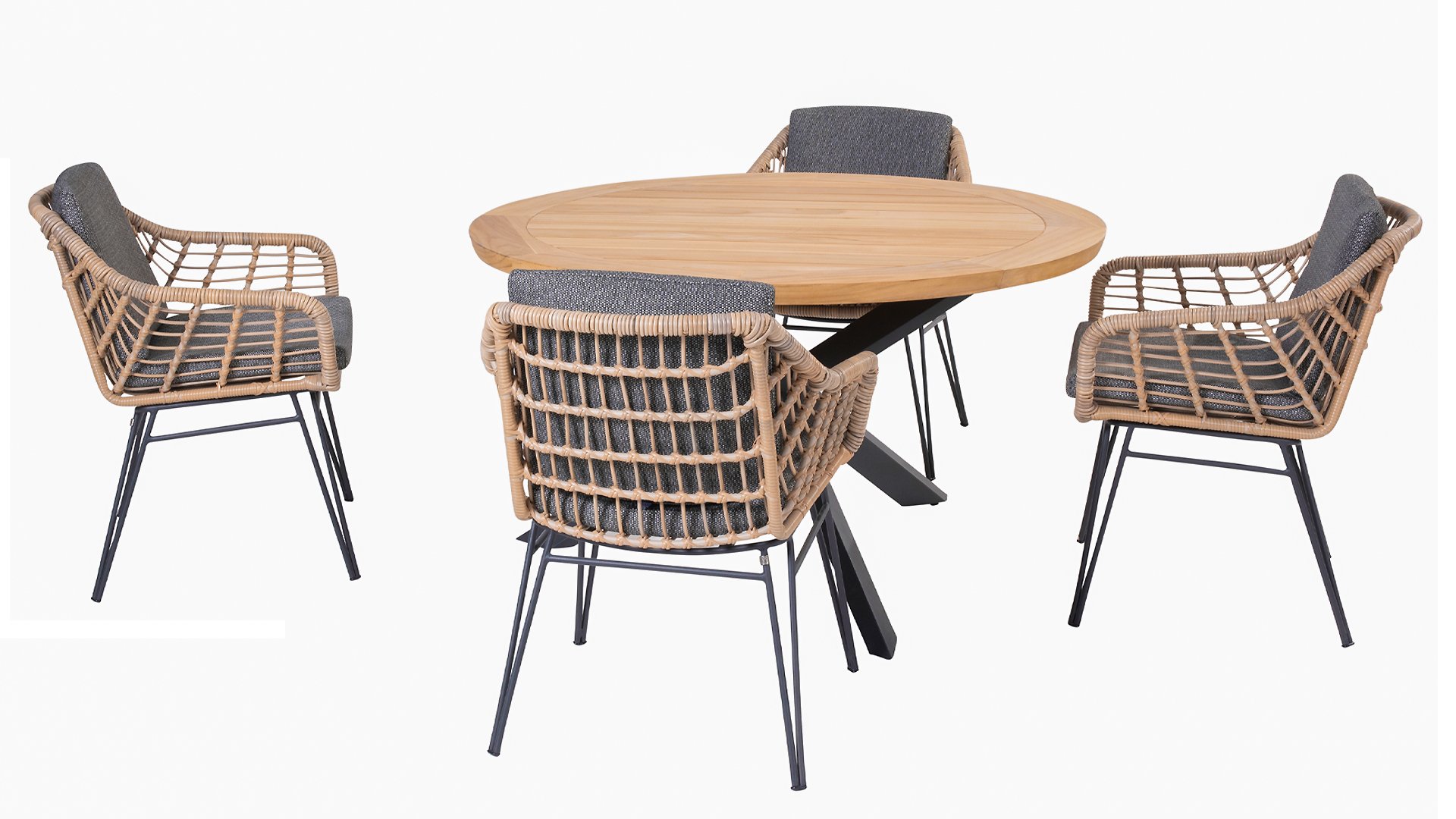 1 x Taste Prado Tisch Ø 130cm Teak/Alu Anthrazit