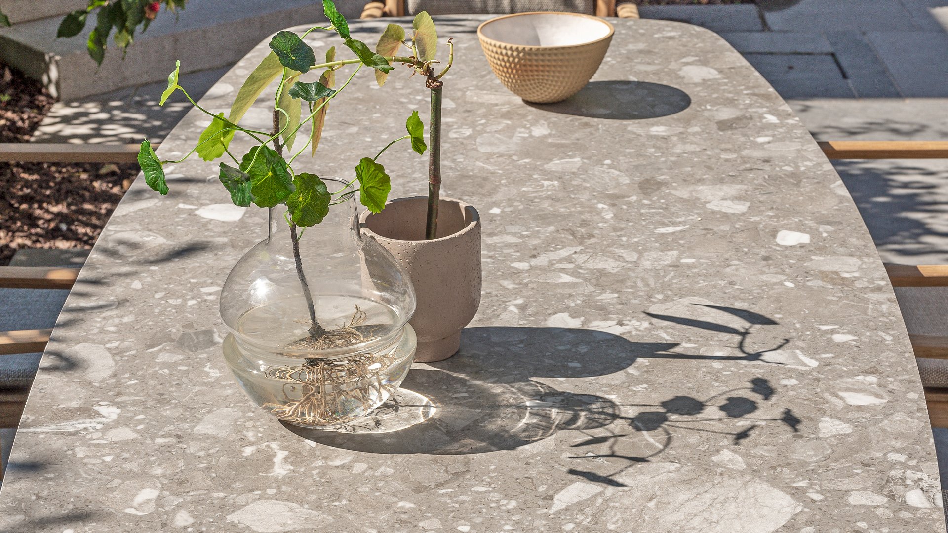 Keramik-Tische erfordern keine aufwändige Pflege. Wein-, Marmeladen- oder Fettflecke verschwinden im Handumdrehen mit Hilfe eines Schwamms oder einer Bürste und etwas Seifenwasser. Auch die im Haushalt verwendeten Säuren hinterlassen keine Spuren. Aber Keramik lässt sich nicht nur leicht reinigen, sondern ist auch ein hygienisches Material. Da es geschmacks- und geruchsneutral ist, können Sie Lebensmittel direkt auf die Keramik-Tischplatte legen. Bitte beachten Sie:Verwenden Sie zur Reinigung Ihrer 4 Seasons Outdoor Gartenmöbel keinen Hochdruckreiniger oder aggressive Reinigungs- oder Bleichmittel. Das kann die Beschichtung dauerhaft beschädigen. Auch können sich dadurch weiße Flecken bilden. Um Schäden vorzubeugen, seien Sie auch vorsichtig mit Feuer, heißen Gegenständen und hartnäckigen Flüssigkeiten wie Öl, Wein oder Ketchup. Um bleibende Flecken oder Verfärbungen zu vermeiden, decken Sie Ihre Möbel nicht dauerhaft ab und stellen auch keine Dekoration dauerhaft auf die Möbel.