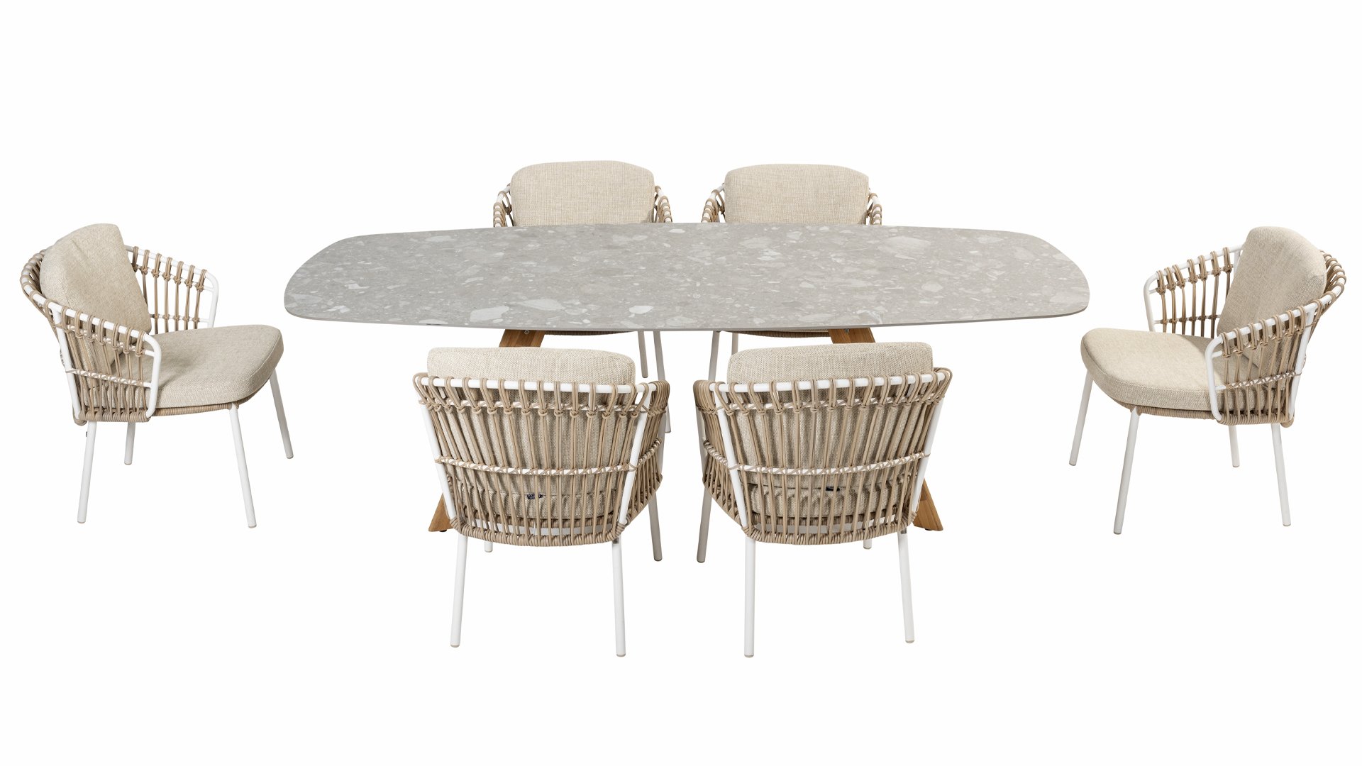 1 x 4Seasons Outdoor Montana Tisch 240x103cm Teak Ceramic Terrazzo