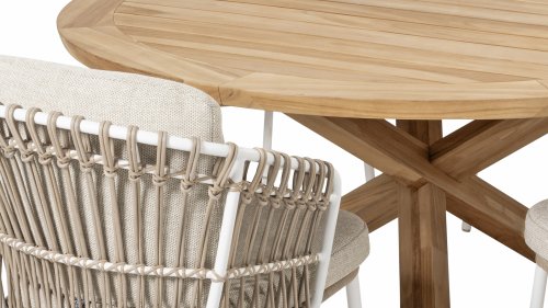 Gartenmöbel aus Teakholz bieten einen atemberaubenden Blick.Teakholz eignet sich besonders gut für den Einsatz im Außenbereich. Es ist resistent gegen Schädlinge und Pilze und widerstandsfähig gegen Sonne, Regen und Schnee. Mit der Zeit entwickelt das Teakholz eine silbergraue Patina. Gartenmöbel aus Teakholz bieten einen atemberaubenden Blick. Darüber hinaus ist es starkes Material und erfordert nur wenig Wartung. Wer die ursprüngliche Farbe des Teakholzes bevorzugt, kann durch regelmäßiges benutzen unser Pflegemittel ganz einfach das Vergrauen des Holzes verhindern.Darüber hinaus können Sie Teak mit grüner Seife reinigen. Durch Temperaturunterschiede und durch den Wechsel von Feuchtigkeit und Trockenheit können kleine Haarrisse entstehen. Es ist üblich, dass Man in dies Unvollkommenheiten findet, diese Unregelmäßigkeiten sind kennzeichnend für dieses Produkt. Diese Unregelmäßigkeiten können nie einen Anlass zu Reklamation, Garantie oder Claim formen. Es betrifft eine Unterschrift von Originalität! Wir gewähren Garantie auf alle Produktions- und Konstruktionsfehler. Die Wirkung von Teakholz ist nicht enthalten. Wenn Sie sich für Teakholz entscheiden, erwarten wir, dass Sie diese Eigenschaften zu schätzen wissen. Eventuell auftretende Haarrisse, Äste im Teakholz und raue Oberflächen im Laufe der Zeit fallen nicht unter unsere Garantie. Diese Eigenschaften verleihen dem Teakholz seinen eigenen Charakter und sind Teil der Optik. Seien Sie vorsichtig mit einem Blumentopf oder einer Vase auf Ihrem Gartentisch aus Teakholz, da dies zu hartnäckigen Kreisen oder Farbunterschieden führen kann.