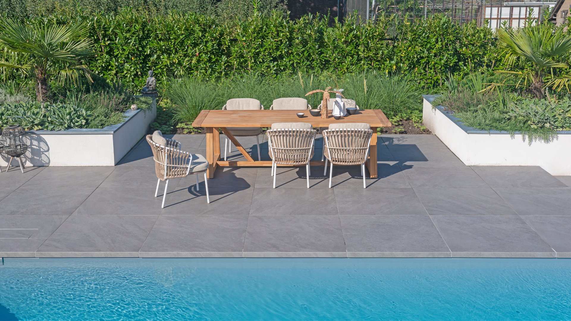 Keramik-Tische erfordern keine aufwändige Pflege. Wein-, Marmeladen- oder Fettflecke verschwinden im Handumdrehen mit Hilfe eines Schwamms oder einer Bürste und etwas Seifenwasser. Auch die im Haushalt verwendeten Säuren hinterlassen keine Spuren. Aber Keramik lässt sich nicht nur leicht reinigen, sondern ist auch ein hygienisches Material. Da es geschmacks- und geruchsneutral ist, können Sie Lebensmittel direkt auf die Keramik-Tischplatte legen. Bitte beachten Sie:Verwenden Sie zur Reinigung Ihrer 4 Seasons Outdoor Gartenmöbel keinen Hochdruckreiniger oder aggressive Reinigungs- oder Bleichmittel. Das kann die Beschichtung dauerhaft beschädigen. Auch können sich dadurch weiße Flecken bilden. Um Schäden vorzubeugen, seien Sie auch vorsichtig mit Feuer, heißen Gegenständen und hartnäckigen Flüssigkeiten wie Öl, Wein oder Ketchup. Um bleibende Flecken oder Verfärbungen zu vermeiden, decken Sie Ihre Möbel nicht dauerhaft ab und stellen auch keine Dekoration dauerhaft auf die Möbel.