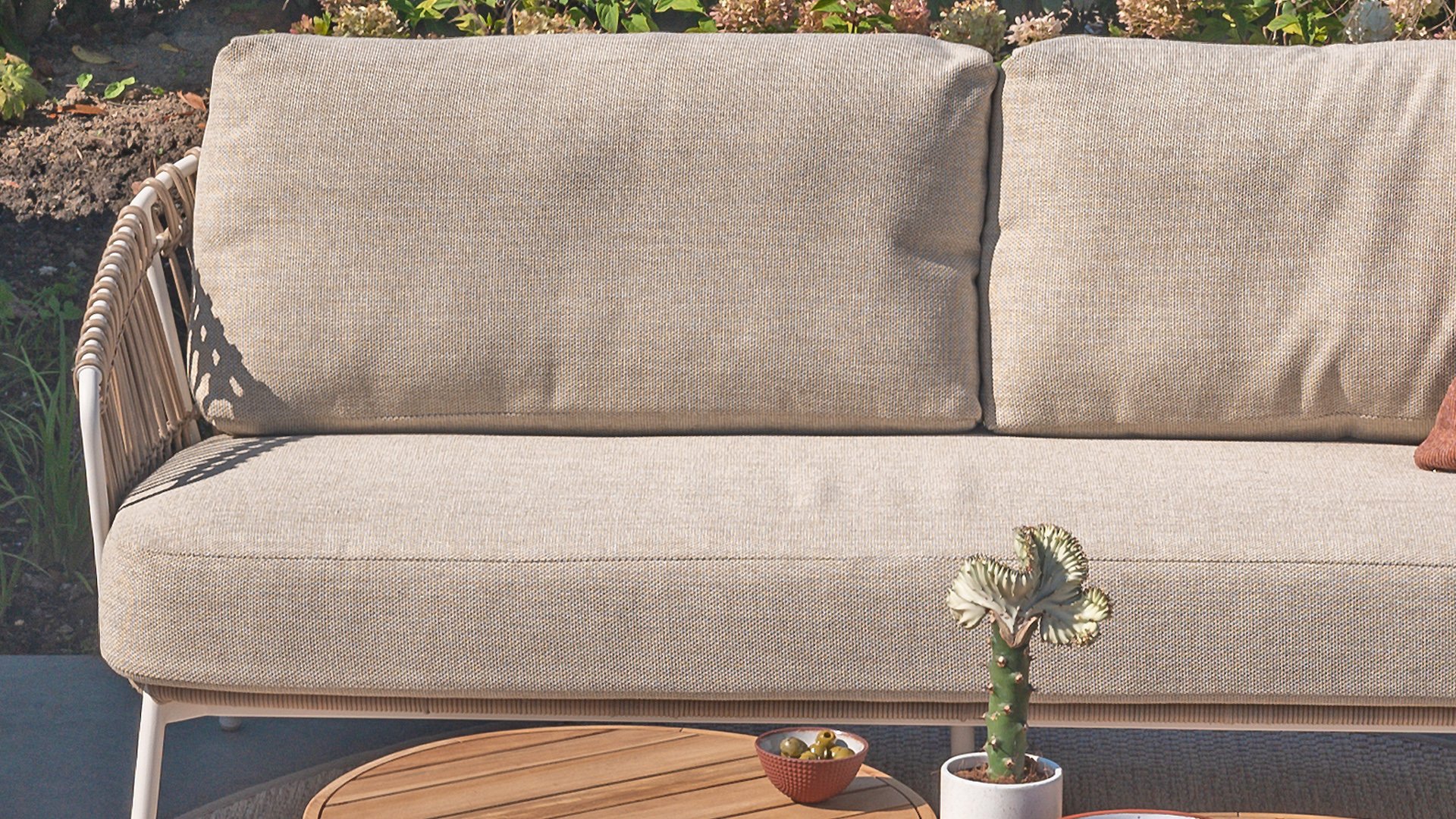 4SO Kissen fühlen sich komfortabel an, fast so wie das Sofa oder die Stühle aus Innenbereichen. Dies ist der Fall, weil fast alle unsere Kissen mit Olefin-Stoff bezogen sind. Dieser Stoff besitzt verschiedene, einzigartige Eigenschaften. Der Rohstoff für die Olefinherstellung ist Öl. Dazu wird bereits in einem frühen Stadium Farbstoff gegeben, sodass sich dieser im Kern befindet. Dadurch ist der Stoff so farbecht, Uv-beständig und wasserabweisend. Dadurch wird Olefin beispielsweise auch für technische Sportbekleidung und in der Autobranche verwendet.