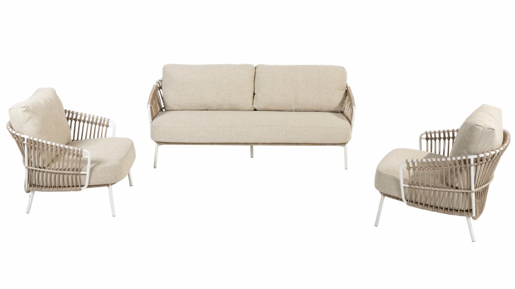 Erleben Sie ultimativen Komfort und moderne Eleganz mit dem 4 Seasons Outdoor Dalias Loungegruppe. Dieses Set wird mit Kissen geliefert und verfügt über ein raffiniertes, taupefarbenes Korbgeflecht und einen eleganten weißen Edelstahlrahmen. Hier sind einige Eigenschaften, die dieses Lounge-Set zu einem absoluten Favoriten machen: 5 Jahre Garantie und 10 Jahre Garantie auf Korbgeflecht, Hularo-Geflecht: hochwertiges Korbgeflecht, äußerst bequem, moderne Optik, auffälliges Design und wetterfest. Auch als Dining- und Low-Dining-Set erhältlich, sehen Sie sie sich hier an: 4SO Dalias Dining- und 4SO Dalias Low Dining-Set.