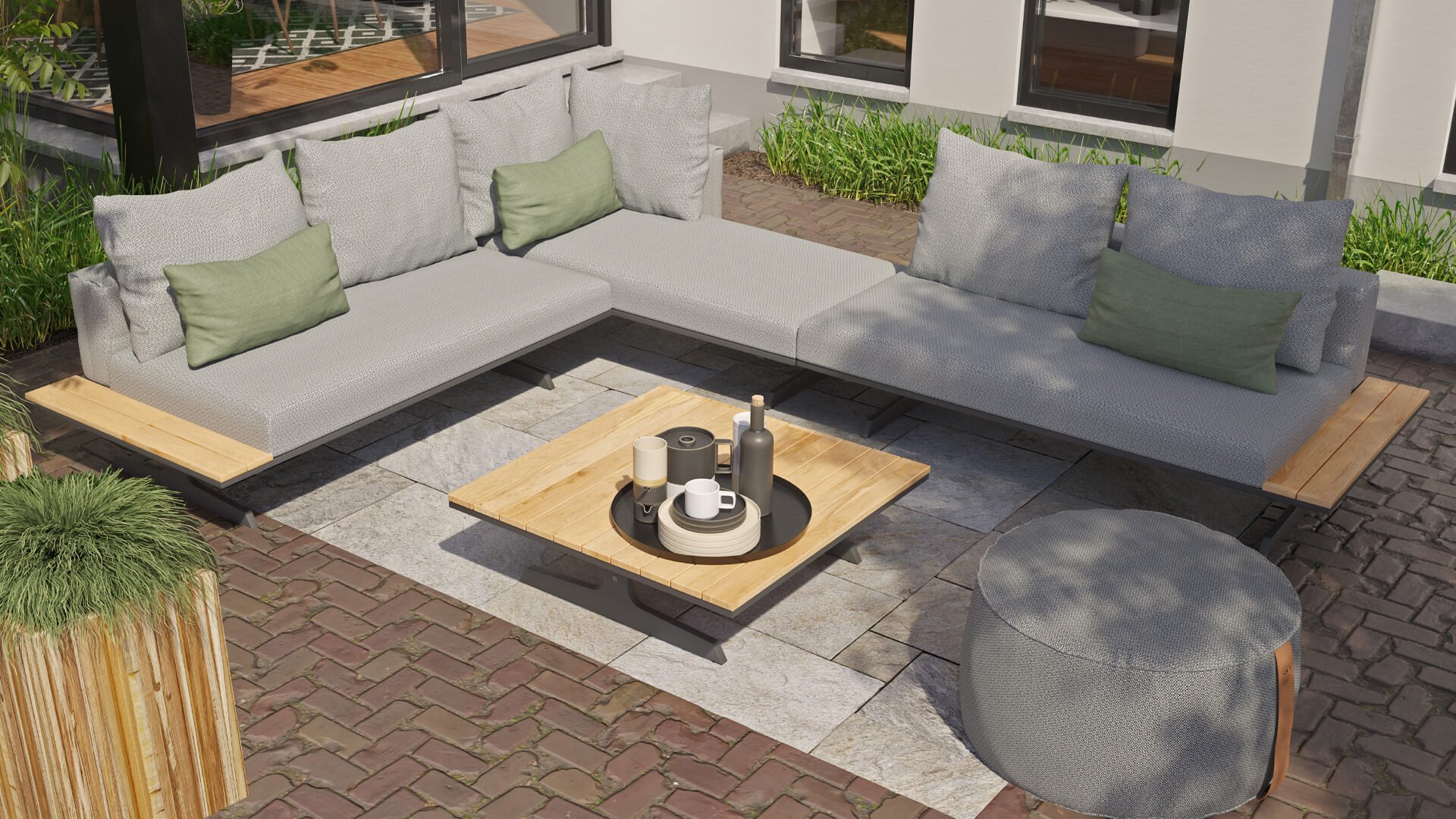 4 Seasons Outdoor Endless Loungeset steht für unbegrenzte Flexibilität. Vollständiges modulares Loungeset, einzigartig in den Aufstellungsmöglichkeiten mit einem modernen Erscheinungsbild. Wunderschöne Kombination aus Aluminium und Teakholz. Endless modulare Lounge-Möglichkeiten also endlos....!