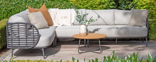 Leidenschaftlich aus den besten Materialien hergestellt. Diese wunderschöne 4 Seasons Outdoor Fabrice Lounge-Serie hat nicht nur Flair, sondern bietet auch hervorragenden Sitzkomfort. Der Rahmen der 4SO Fabrice Loungeset verläuft straff und fließend ineinander über und ist mit straff umwickeltem Seil veredelt. Rücken- und Sitzbereich sind mit diesem robusten Seil geflochten und bieten einen festen, aber bequemen Sitz. Der Rahmen bildet ein verspieltes und minimalistisches Zusammenspiel von fließenden Linien, die zusammenkommen und wieder auseinandergehen, eine Augenweide!