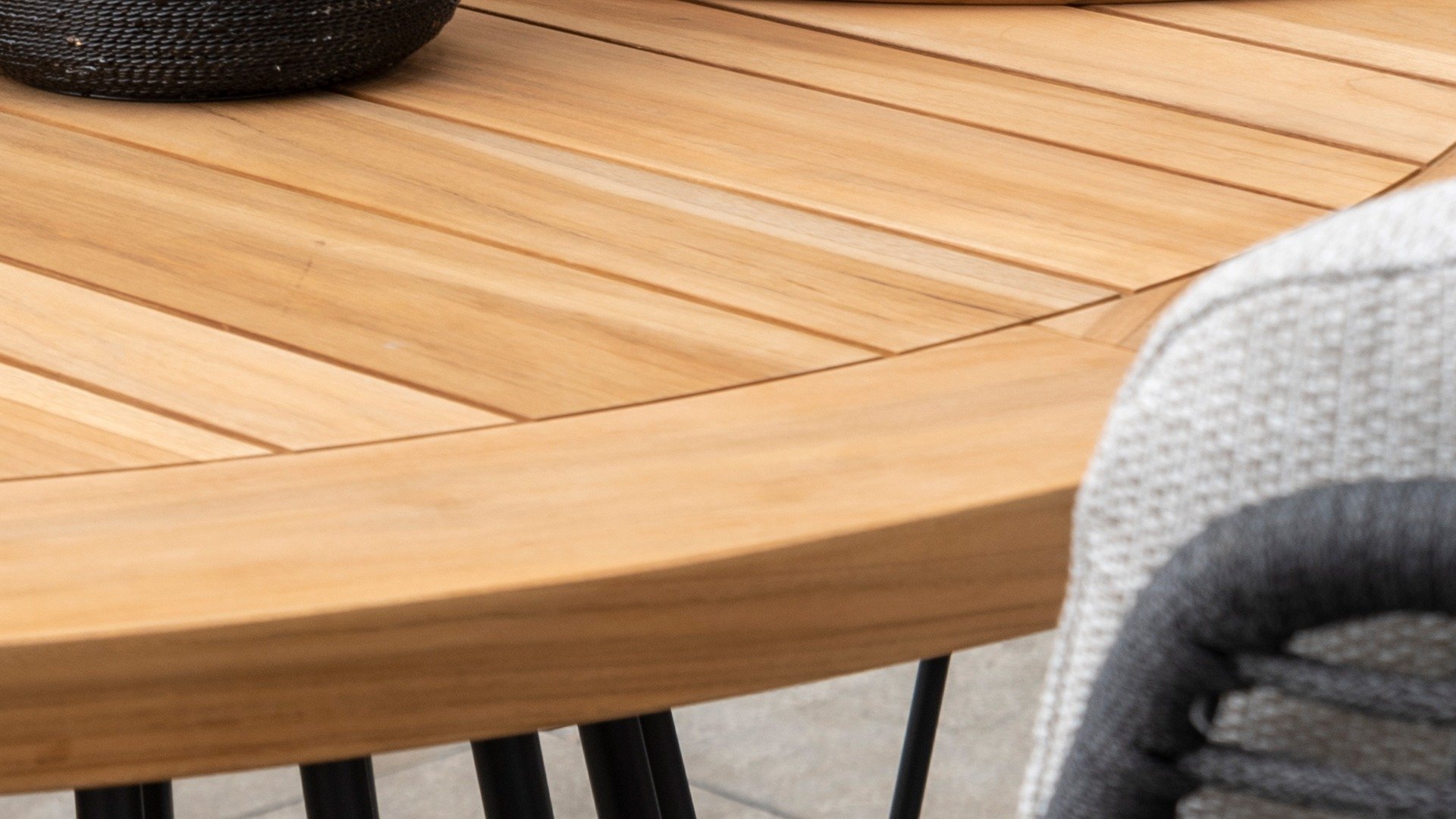 Gartenmöbel aus Teakholz bieten einen atemberaubenden Blick.Teakholz eignet sich besonders gut für den Einsatz im Außenbereich. Es ist resistent gegen Schädlinge und Pilze und widerstandsfähig gegen Sonne, Regen und Schnee. Mit der Zeit entwickelt das Teakholz eine silbergraue Patina. Gartenmöbel aus Teakholz bieten einen atemberaubenden Blick. Darüber hinaus ist es starkes Material und erfordert nur wenig Wartung. Wer die ursprüngliche Farbe des Teakholzes bevorzugt, kann durch regelmäßiges benutzen unser Pflegemittel ganz einfach das Vergrauen des Holzes verhindern.Darüber hinaus können Sie Teak mit grüner Seife reinigen. Durch Temperaturunterschiede und durch den Wechsel von Feuchtigkeit und Trockenheit können kleine Haarrisse entstehen. Es ist üblich, dass Man in dies Unvollkommenheiten findet, diese Unregelmäßigkeiten sind kennzeichnend für dieses Produkt. Diese Unregelmäßigkeiten können nie einen Anlass zu Reklamation, Garantie oder Claim formen. Es betrifft eine Unterschrift von Originalität!  Wir gewähren Garantie auf alle Produktions- und Konstruktionsfehler. Die Wirkung von Teakholz ist nicht enthalten. Wenn Sie sich für Teakholz entscheiden, erwarten wir, dass Sie diese Eigenschaften zu schätzen wissen. Eventuell auftretende Haarrisse, Äste im Teakholz und raue Oberflächen im Laufe der Zeit fallen nicht unter unsere Garantie. Diese Eigenschaften verleihen dem Teakholz seinen eigenen Charakter und sind Teil der Optik. Seien Sie vorsichtig mit einem Blumentopf oder einer Vase auf Ihrem Gartentisch aus Teakholz, da dies zu hartnäckigen Kreisen oder Farbunterschieden führen kann.