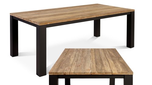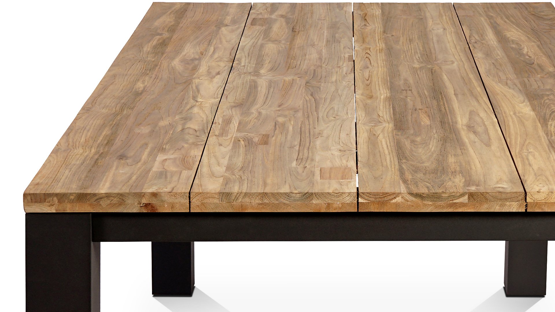 SenS-Tische werden aus recyceltem Teakholz hergestellt. Das bedeutet, dass jeder Tisch ein Unikat ist. Es verleiht der Tischplatte ein robustes Aussehen. Bitte beachten Sie, dass Teakholz aufgrund von Verwitterung funktioniert. Unvollkommenheiten und Unregelmäßigkeiten sind kennzeichnend für dieses Produkt.