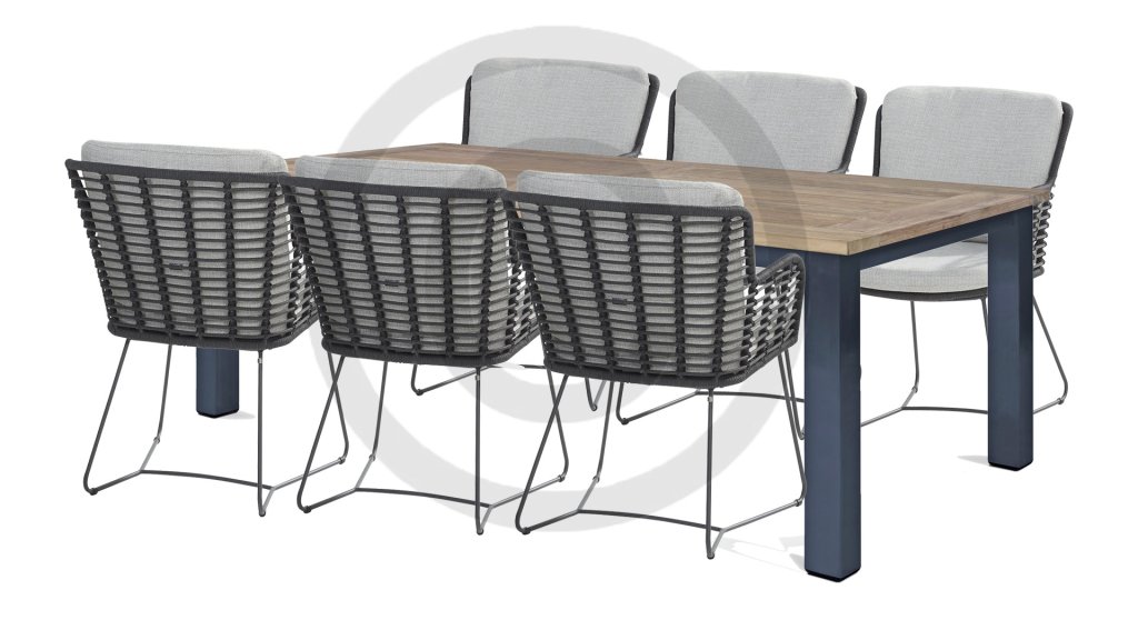 Aus den besten Materialien gefertigt, mit Leidenschaft hergestellt. Diese wunderschöne 4Seasons Fabrice Dining-Serie besticht nicht nur durch Stil, sondern auch durch hervorragenden Sitzkomfort. Der Stuhl ist auch in folgenden Farben erhältlich: Anthrazit, Latte & TerreDie verwendeten Materialien sind Kunststoffseil, Olefin & Aluminium. Kunststoffseil enthält einen Kern, der für Farbechtheit sorgt und es schimmelbeständig macht. Olefin macht die Kissen ebenfalls farbecht und wasserbeständig, der Stoff fühlt sich auch angenehm an. Das Gestell des Fabrice ist pulverbeschichtetes Aluminium, um das moderne Design abzurunden! Auch erhältlich in Lounge: 4SO Fabrice Eck-Loungeset & 4SO Fabrice Loungeset.