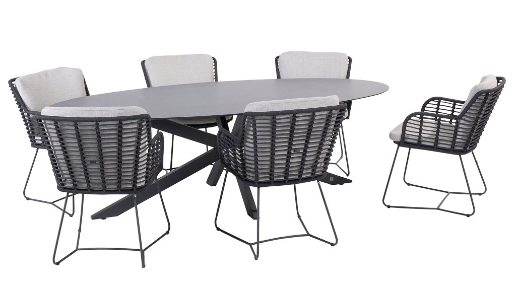 1 x 4Seasons Outdoor Privada Ellips Tisch 240x107cm Anthrazit Alu-HPL Slate Anthrazit