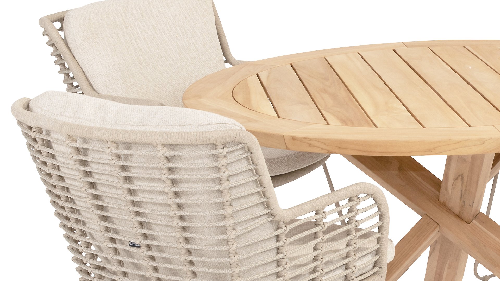 Dieses wunderschöne Material eignet sich perfekt für den Außenbereich, denn Rope ist nicht nur eine normale Spitze, an der Sie Ihre Schuhe binden können. Unsere runden Fäden sind mit einem Kunststoffkern versehen. Diese Basis aus Polypropylen sorgt dafür, dass sich das Rope minimal dehnt und sie nimmt außerdem keine Feuchtigkeit auf. Die Umhüllung besteht aus Acrylstoff, der mit dem wetterfesten Stoff unserer Gartenkissen vergleichbar ist. Diese Umhüllung fühlt sich weich an und ist sehr wasserabweisend, UV-beständig und farbecht. Die flachen Rope-Varianten besitzen den gleichen wetterfesten Materialmix, doch das Polypropylen-Material wurde hier mit dem Acryl-Stoff verwebt. Durch diese Technik besitzt das flache Rope die gleichen Eigenschaften, hat jedoch eine ganz andere Ausstrahlung.