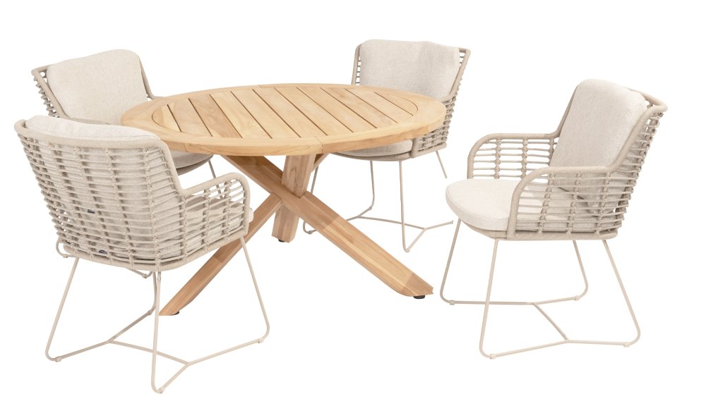 Diesen Tisch können Sie getrost als das Highlight der Kollektion bezeichnen. Das hochwertige Teakholz in Kombination mit dem schönen Kreuzbein machen diesen Taste by 4Seasons Prado 130cm Tisch zu einem Schmuckstück. Mit fast jedem Esszimmerstuhl aus unserer Kollektion ist für jeden etwas dabei. Kann mit Prado Lazy Susan kombiniert werden und ist auch Verfügbar mit Anthrazit Gestell Taste 4Seasons Prado 130 Anthrazit oder Latte Taste 4Seasons Prado 130 Latte.