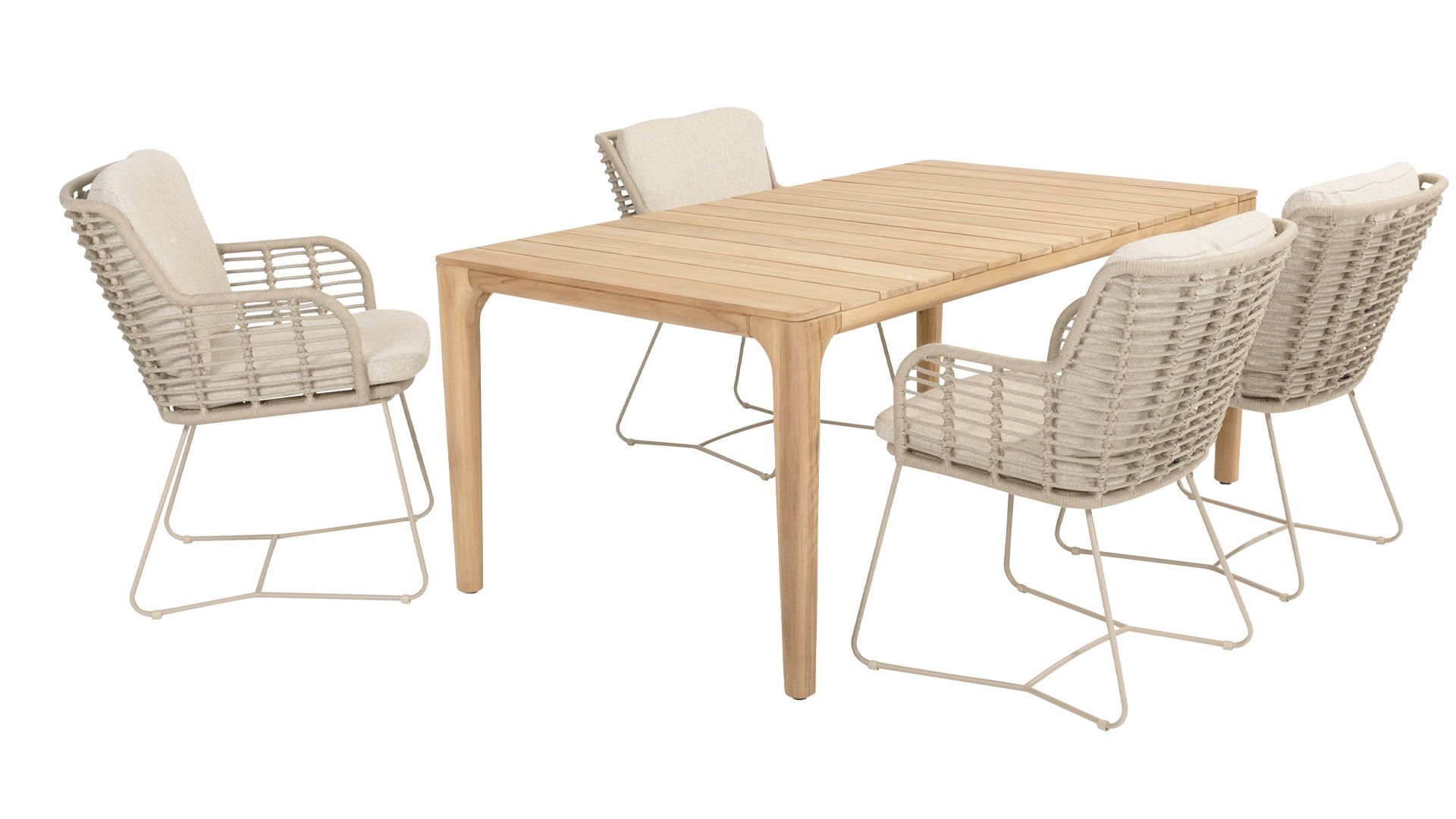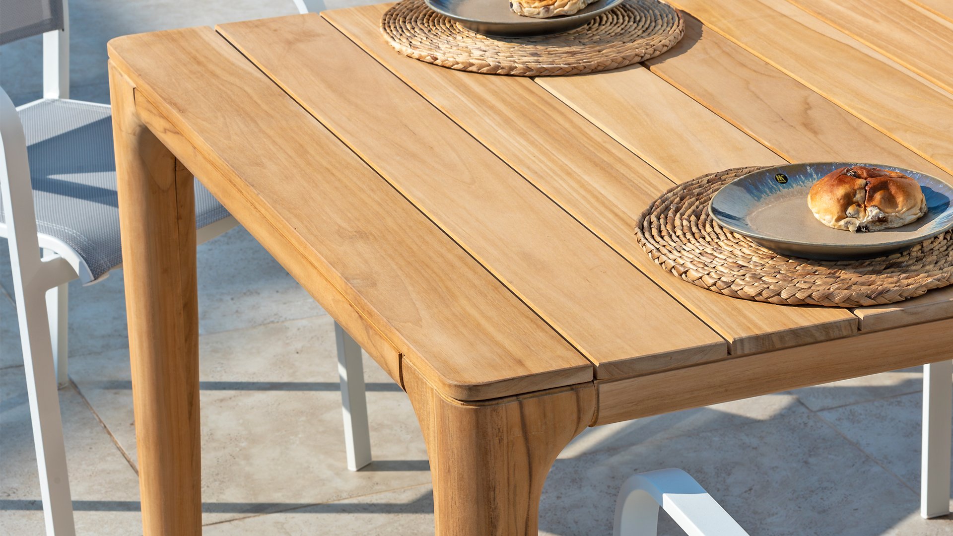 Mit dem Liam Tisch von Taste 4SO können Sie beim Essen im Freien den zeitlosen Charme und die Langlebigkeit von Teakholz genießen. Erhältlich in Vollteakholz und Teakkeramik: