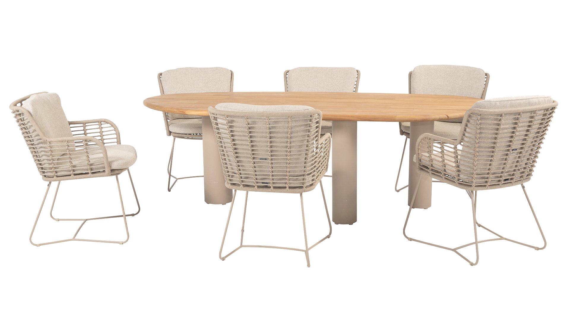 Aus den besten Materialien gefertigt, mit Leidenschaft hergestellt. Diese wunderschöne 4Seasons Fabrice Dining-Serie besticht nicht nur durch Stil, sondern auch durch hervorragenden Sitzkomfort. Der Stuhl ist auch in folgenden Farben erhältlich: Anthrazit, Latte & TerreDie verwendeten Materialien sind Kunststoffseil, Olefin & Aluminium. Kunststoffseil enthält einen Kern, der für Farbechtheit sorgt und es schimmelbeständig macht. Olefin macht die Kissen ebenfalls farbecht und wasserbeständig, der Stoff fühlt sich auch angenehm an. Das Gestell des Fabrice ist pulverbeschichtetes Aluminium, um das moderne Design abzurunden! Auch erhältlich in Lounge: 4SO Fabrice Eck-Loungeset & 4SO Fabrice Loungeset.