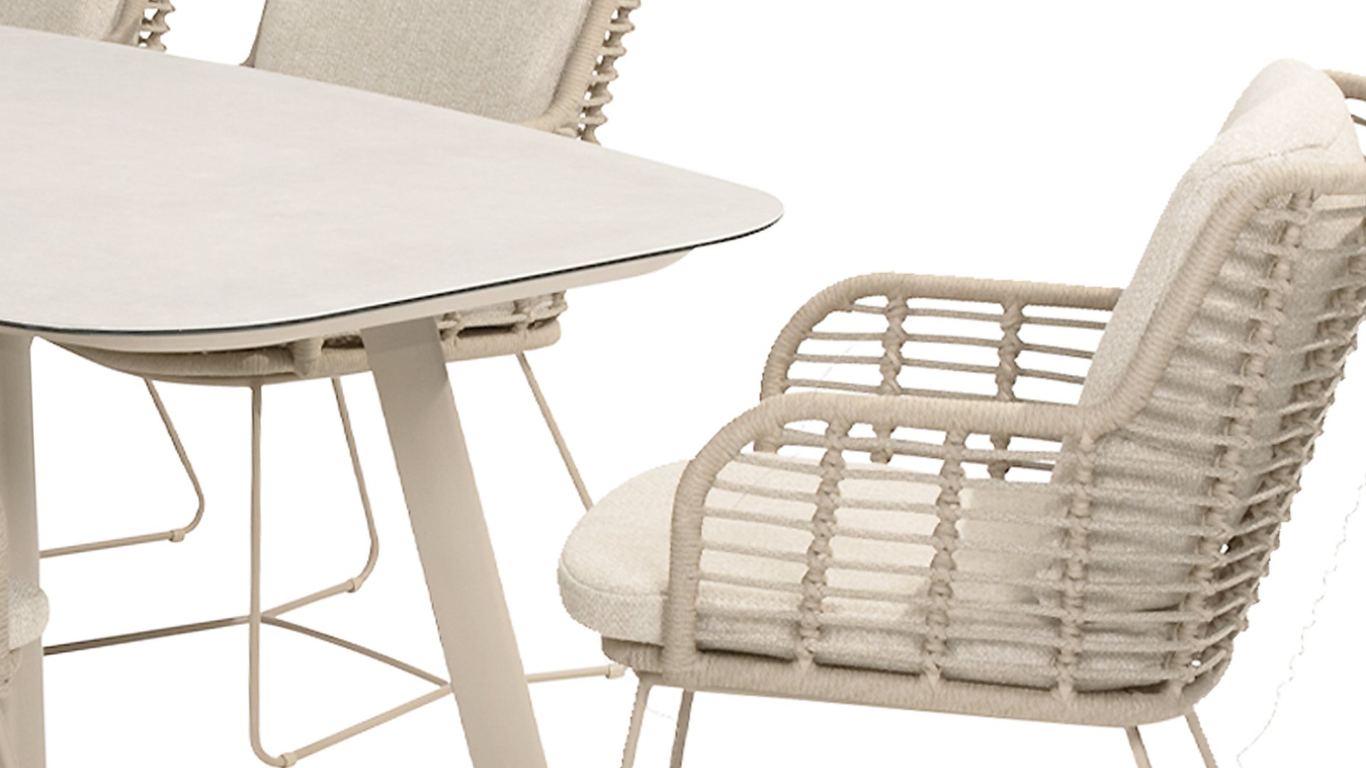 Ein Rope-Strang scheint weniger stark zu sein als ein Faden aus Geflecht. Dennoch sind die Rohstoffe für diese Materialien fast gleich. Die Dehnbarkeit ist minimal. 4 Seasons Outdoor-Gartenmöbel mit Rope sind für Personen geeignet mit einem Körpergewicht bis 110 kg. Es ist deshalb ein besonders starkes Material. Es ist jedoch wichtig, mit scharfen Gegenständen vorsichtig umzugehen. Unser 4SO-Rope ist wetterfest, ein scharfes Objekt kann Ihre Gartenmöbel jedoch beträchtlich beschädigen. Wir gewähren 5 Jahre Garantie auf Herstellungs- und Konstruktionsfehler. Sollte unverhofft eine Beschädigung auftreten, ist diese meistens reparierbar. Kontaktieren Sie in diesem Fall Ihren Händler.