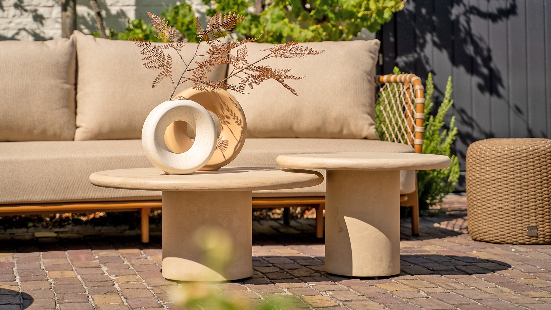 Entdecken Sie die Hampton Kaffeetische, eine stilvolle Ergänzung der beliebten Hampton-Serie. Diese eleganten Tische vereinen edles Design und natürliche Optik mit der Funktionalität kompakter Abmessungen. Hergestellt aus hochwertigem Mortex in einem ruhigen Beige-Weiß-Ton, verleihen sie jedem Lounge-Bereich oder jeder Terrasse Ruhe und Charakter.