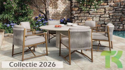 Der Hampton ist aus hochwertigem Mortex gefertigt, einem langlebigen und wasserfesten Material, das für seine natürliche Optik und außergewöhnliche Wetterbeständigkeit bekannt ist. Jede Tischplatte wird von Hand bearbeitet und schafft so einen einzigartigen, warmen Look, der sowohl moderne als auch mediterrane Gärten perfekt ergänzt.
