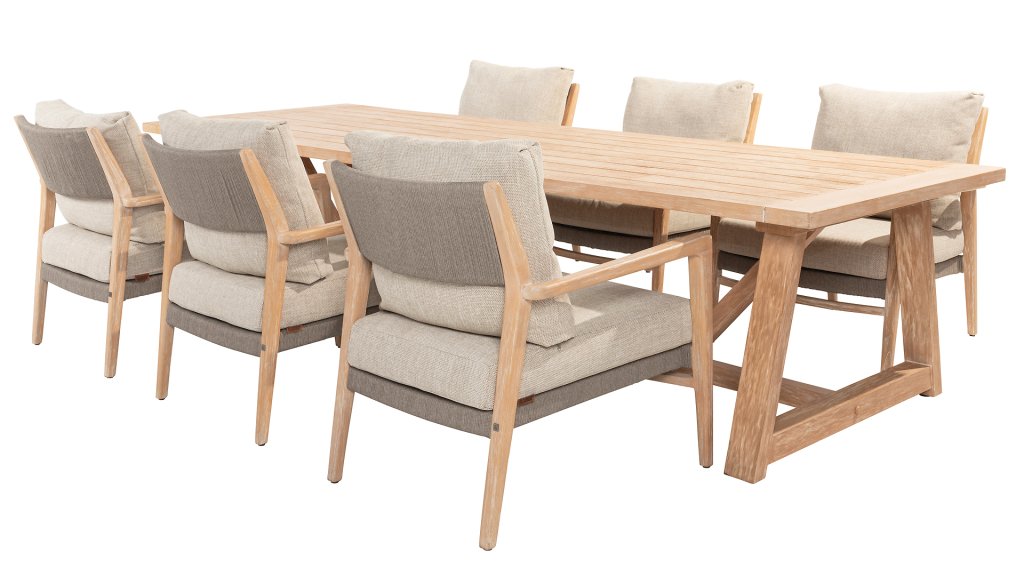 Gartenmöbel aus Teakholz bieten einen atemberaubenden Blick.Teakholz eignet sich besonders gut für den Einsatz im Außenbereich. Es ist resistent gegen Schädlinge und Pilze und widerstandsfähig gegen Sonne, Regen und Schnee. Mit der Zeit entwickelt das Teakholz eine silbergraue Patina. Gartenmöbel aus Teakholz bieten einen atemberaubenden Blick. Darüber hinaus ist es starkes Material und erfordert nur wenig Wartung. Wer die ursprüngliche Farbe des Teakholzes bevorzugt, kann durch regelmäßiges benutzen unser Pflegemittel ganz einfach das Vergrauen des Holzes verhindern.Darüber hinaus können Sie Teak mit grüner Seife reinigen. Durch Temperaturunterschiede und durch den Wechsel von Feuchtigkeit und Trockenheit können kleine Haarrisse entstehen. Es ist üblich, dass Man in dies Unvollkommenheiten findet, diese Unregelmäßigkeiten sind kennzeichnend für dieses Produkt. Diese Unregelmäßigkeiten können nie einen Anlass zu Reklamation, Garantie oder Claim formen. Es betrifft eine Unterschrift von Originalität! Wir gewähren Garantie auf alle Produktions- und Konstruktionsfehler. Die Wirkung von Teakholz ist nicht enthalten. Wenn Sie sich für Teakholz entscheiden, erwarten wir, dass Sie diese Eigenschaften zu schätzen wissen. Eventuell auftretende Haarrisse, Äste im Teakholz und raue Oberflächen im Laufe der Zeit fallen nicht unter unsere Garantie. Diese Eigenschaften verleihen dem Teakholz seinen eigenen Charakter und sind Teil der Optik. Seien Sie vorsichtig mit einem Blumentopf oder einer Vase auf Ihrem Gartentisch aus Teakholz, da dies zu hartnäckigen Kreisen oder Farbunterschieden führen kann.