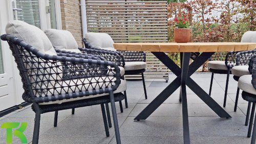 Gartenmöbel aus Teakholz bieten einen atemberaubenden Blick.Teakholz eignet sich besonders gut für den Einsatz im Außenbereich. Es ist resistent gegen Schädlinge und Pilze und widerstandsfähig gegen Sonne, Regen und Schnee. Mit der Zeit entwickelt das Teakholz eine silbergraue Patina. Gartenmöbel aus Teakholz bieten einen atemberaubenden Blick. Darüber hinaus ist es starkes Material und erfordert nur wenig Wartung. Wer die ursprüngliche Farbe des Teakholzes bevorzugt, kann durch regelmäßiges benutzen unser Pflegemittel ganz einfach das Vergrauen des Holzes verhindern.Darüber hinaus können Sie Teak mit grüner Seife reinigen. Durch Temperaturunterschiede und durch den Wechsel von Feuchtigkeit und Trockenheit können kleine Haarrisse entstehen. Es ist üblich, dass Man in dies Unvollkommenheiten findet, diese Unregelmäßigkeiten sind kennzeichnend für dieses Produkt. Diese Unregelmäßigkeiten können nie einen Anlass zu Reklamation, Garantie oder Claim formen. Es betrifft eine Unterschrift von Originalität! Wir gewähren Garantie auf alle Produktions- und Konstruktionsfehler. Die Wirkung von Teakholz ist nicht enthalten. Wenn Sie sich für Teakholz entscheiden, erwarten wir, dass Sie diese Eigenschaften zu schätzen wissen. Eventuell auftretende Haarrisse, Äste im Teakholz und raue Oberflächen im Laufe der Zeit fallen nicht unter unsere Garantie. Diese Eigenschaften verleihen dem Teakholz seinen eigenen Charakter und sind Teil der Optik. Seien Sie vorsichtig mit einem Blumentopf oder einer Vase auf Ihrem Gartentisch aus Teakholz, da dies zu hartnäckigen Kreisen oder Farbunterschieden führen kann.